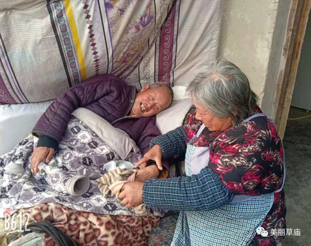刘达英现在已经年近70了但是我看到她第一眼时候并不像70岁的,虽然满头布满银丝,脸部布满皱纹,但是眼角的笑容告诉我她是一个坚强的女人不会向苦难屈服的女人。我刚到院子里,那时候已经天色已晚,院子里看起来干干净净的,唯一不足的是房间很黑,也不开灯,我说有人吗?刘达英出来了手里拿着一块塑料纸,我说请问是李强家吗?她微笑着说是的,我说咋不开灯呢?她说能看见,我就没开,说完把灯开了。她把塑料纸盖在外面一个破旧沙发上。原来这沙发是留李强每天出来晒太阳躺着用的。看样也年限已久了。从中看出刘达英是一个勤俭持家的好媳妇。走进他们,他们脸庞上都洋溢着幸福又和蔼的笑容。了解李强的身体状况后,他说这十年最幸运的是娶了刘达英为妻子。现在恢复的还不错,手可以拿东西了,给妻子减轻了一点负担。刘达英听到丈夫说这些暖心的话,泪水不由得落了下来。因为对于丈夫来说他是不会说这些动听的暖心话,因为他的爱都是默默的深沉的不善于表达的。或许真的是刘达英的不离不弃无怨无悔触动了丈夫的心。希望这对老夫妻永远把爱放心间,把爱传递给更多的人。把中华传统美德弘扬下去。