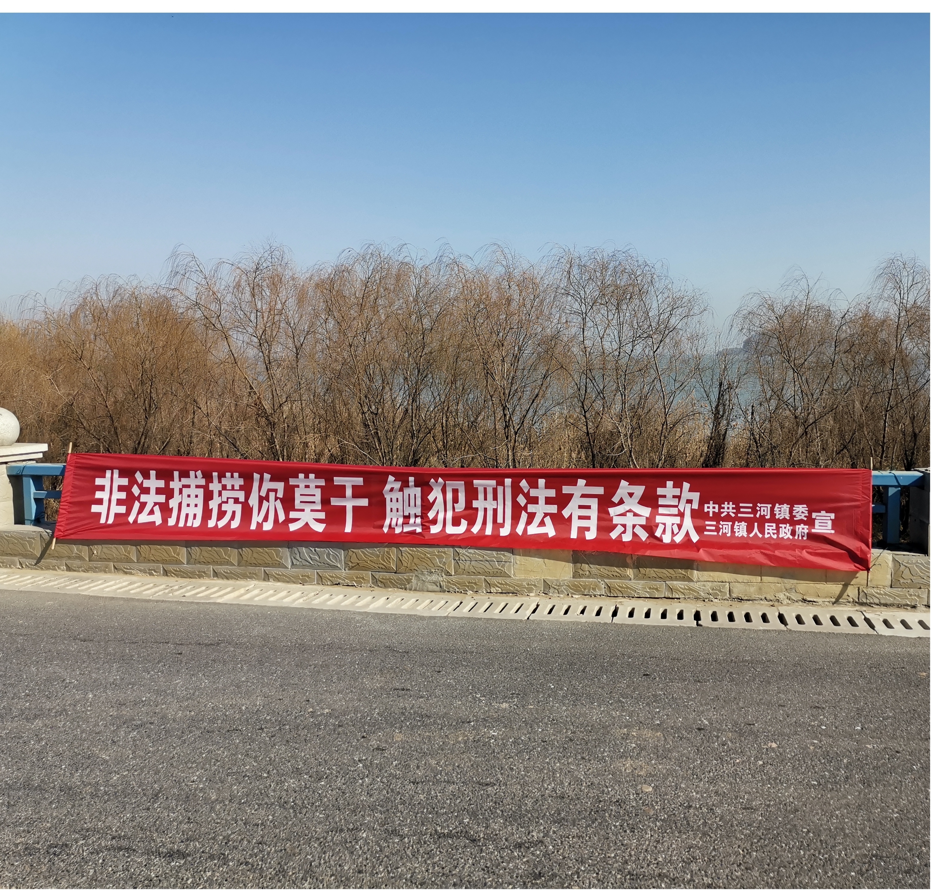 该镇加强宣传攻势,在沿湖环巢湖大道重要路口及沿湖小区悬挂禁捕条幅,加强群众知晓度,营造禁捕宣传氛围,让群众自觉抵制偷捕行为。