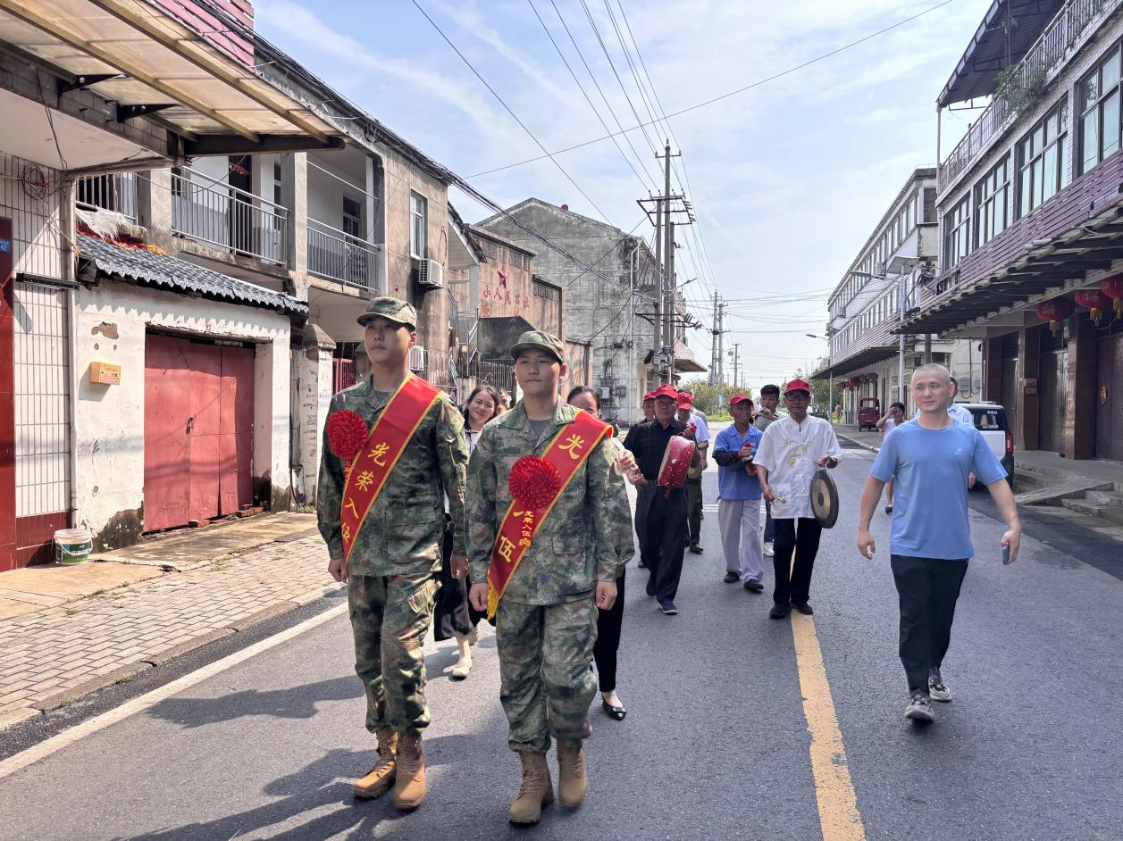 会议结束后,严店镇苏小社区又举办了欢送仪式,两位新兵身着迷彩服、胸戴大红花,在欢快的唢呐声与热烈的欢呼声中踏上街道,村民们沿街列队挥手送别。(余亚琴)