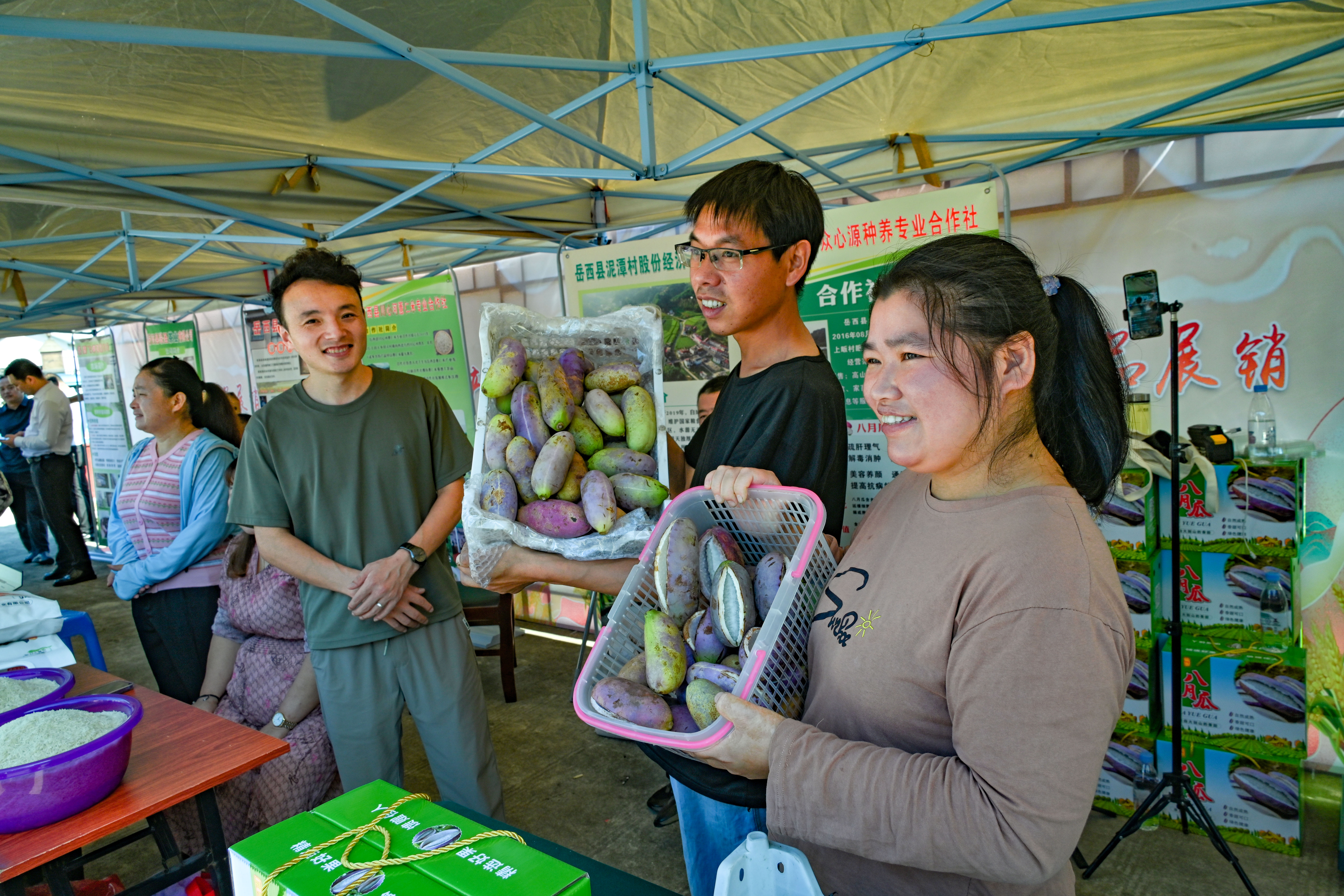 活动现场,岳西县农业农村局、县供销社发挥农产品流通渠道优势,联合田头乡举办了丰收节展销会。