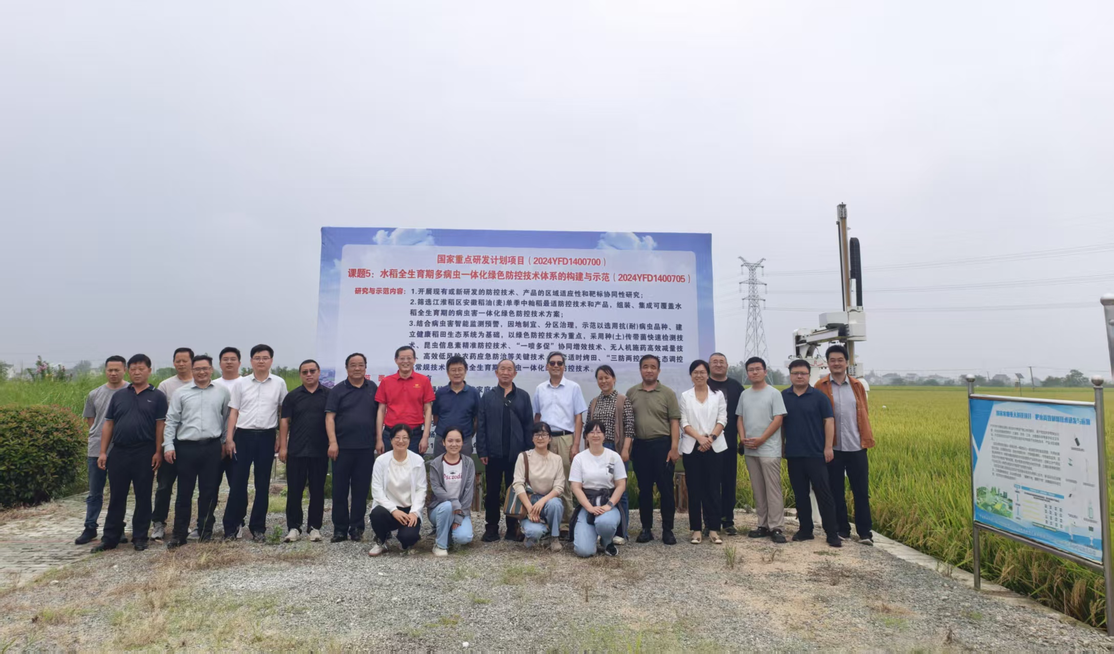为明确“江淮稻作区水稻全生育期多病虫一体化绿色防控技术集成与示范”的应用效果,促进该成果转化与应用,9月29日,安徽省农业科学院组织浙江省农业科学院、贵州大学、安徽省农技推广总站、当涂县农业农村局等单位的专家,对安徽省农业科学院植物保护与农产品质量安全研究所在马鞍山市当涂县实施的国家重点研发计划课题五(2024YFD1400705)任务“江淮稻作区水稻全生育期多病虫一体化绿色防控技术集成与示范”的示范区进行了现场考察评议。