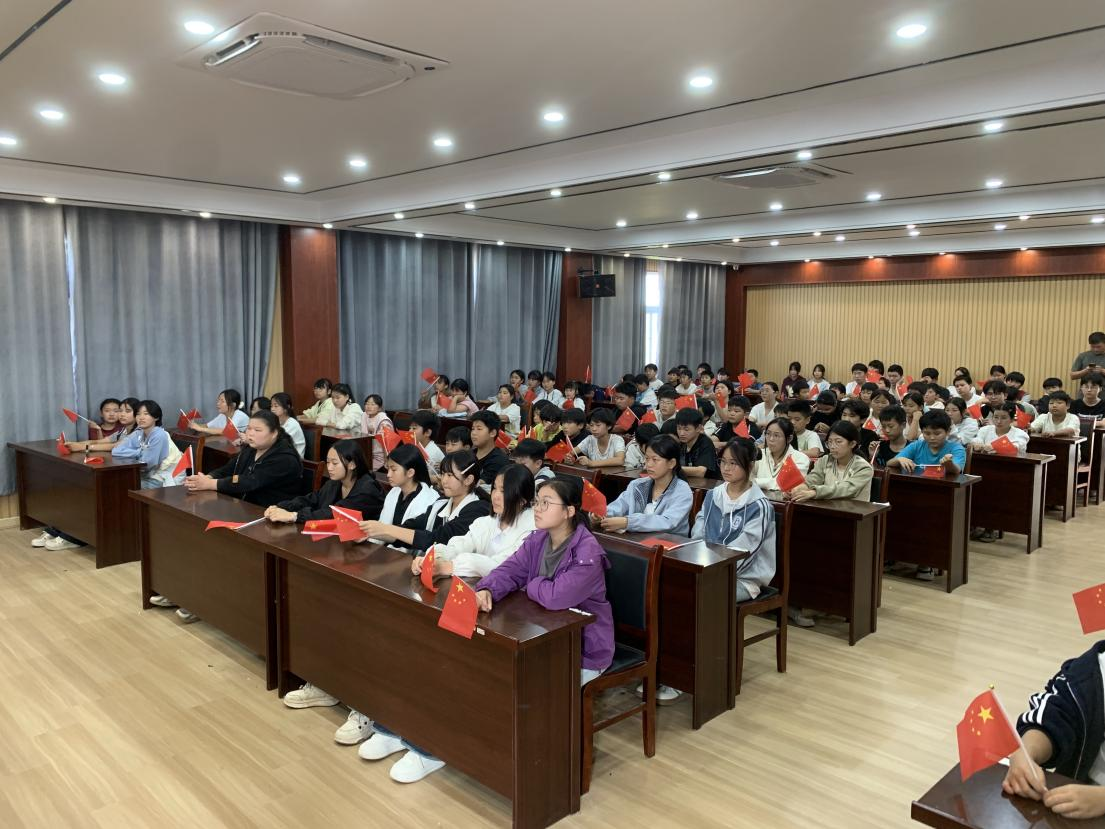 活动在庄严而热烈的氛围中拉开帷幕。工作人员为每位同学发放了小国旗。伴随着激昂的旋律,同学们挥舞着手中的国旗,校园里顿时汇聚成一片涌动的“红色海洋”。一张张洋溢着自豪与激动的脸庞,一个个整齐有力的动作,充分展现了新时代少年炽热的爱国情怀,现场气氛热烈高涨。