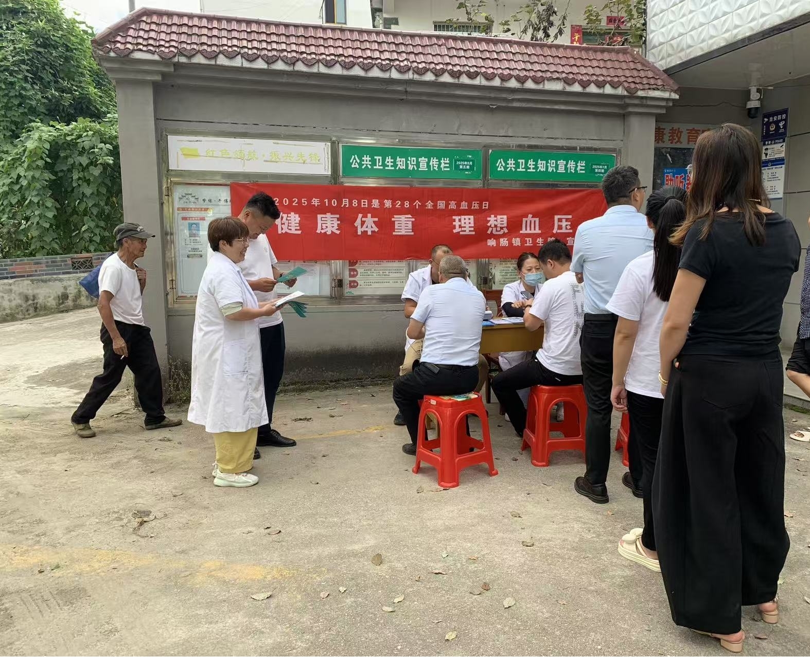 秋阳正好,桂香阵阵。10月8日第28个全国高血压日当天,岳西县响肠镇卫生院紧扣“健康体重 理想血压”主题,组织医护人员走进千佛塔村,把血压计、宣传册搬到村头宣传栏下,将专业健康关怀送到乡亲们家门口。
