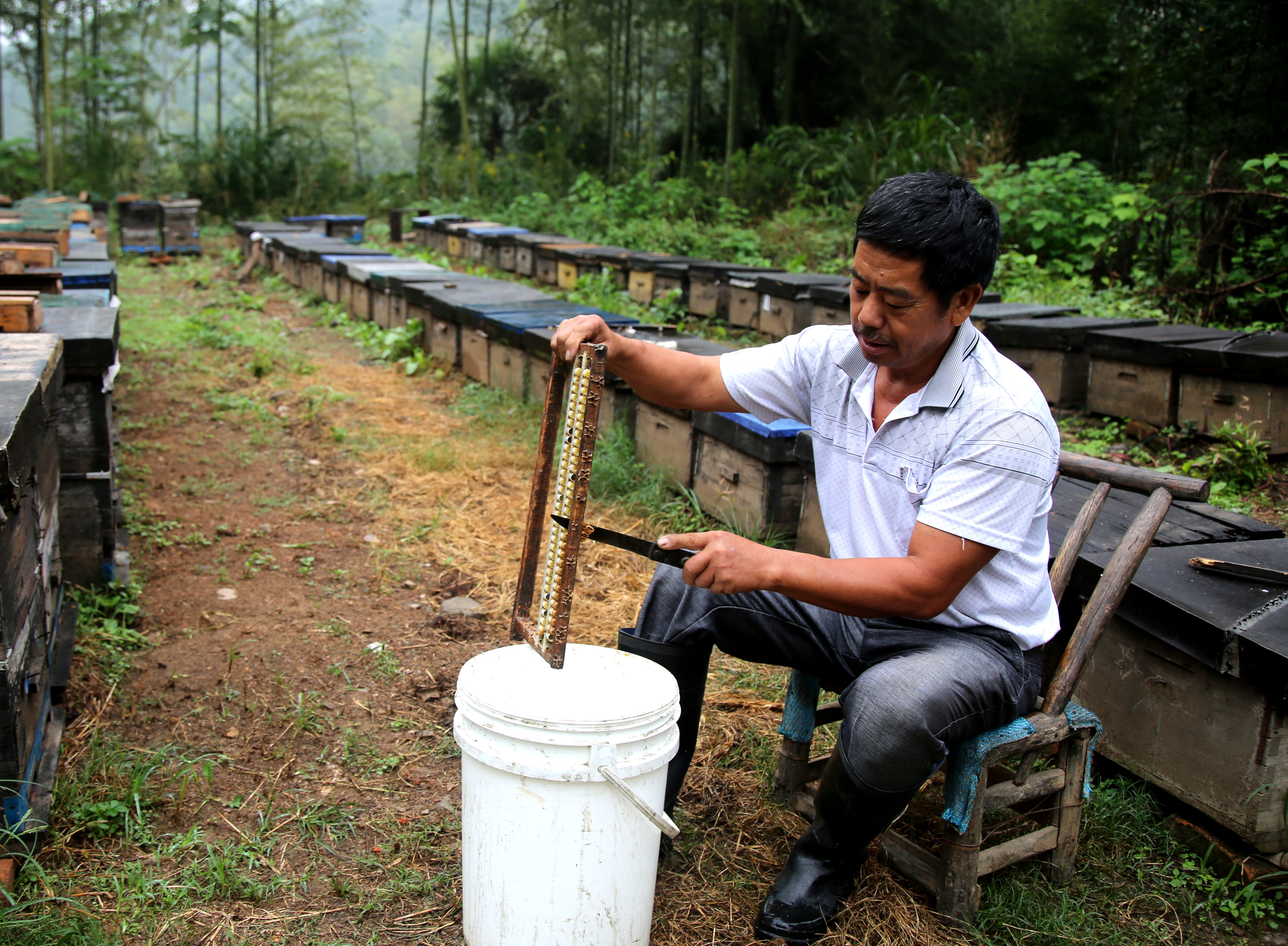 1968年出生的熊成元,家住姚村镇妙泉村红星组,2000年走上养蜂之路,从最初的60箱发展到现在的175箱。他的蜂产品主要是蜂蜜,正常年份年产1万余斤,还有蜂王浆、花粉、蜂胶等产品,年产约5000斤,年收入约8万元。