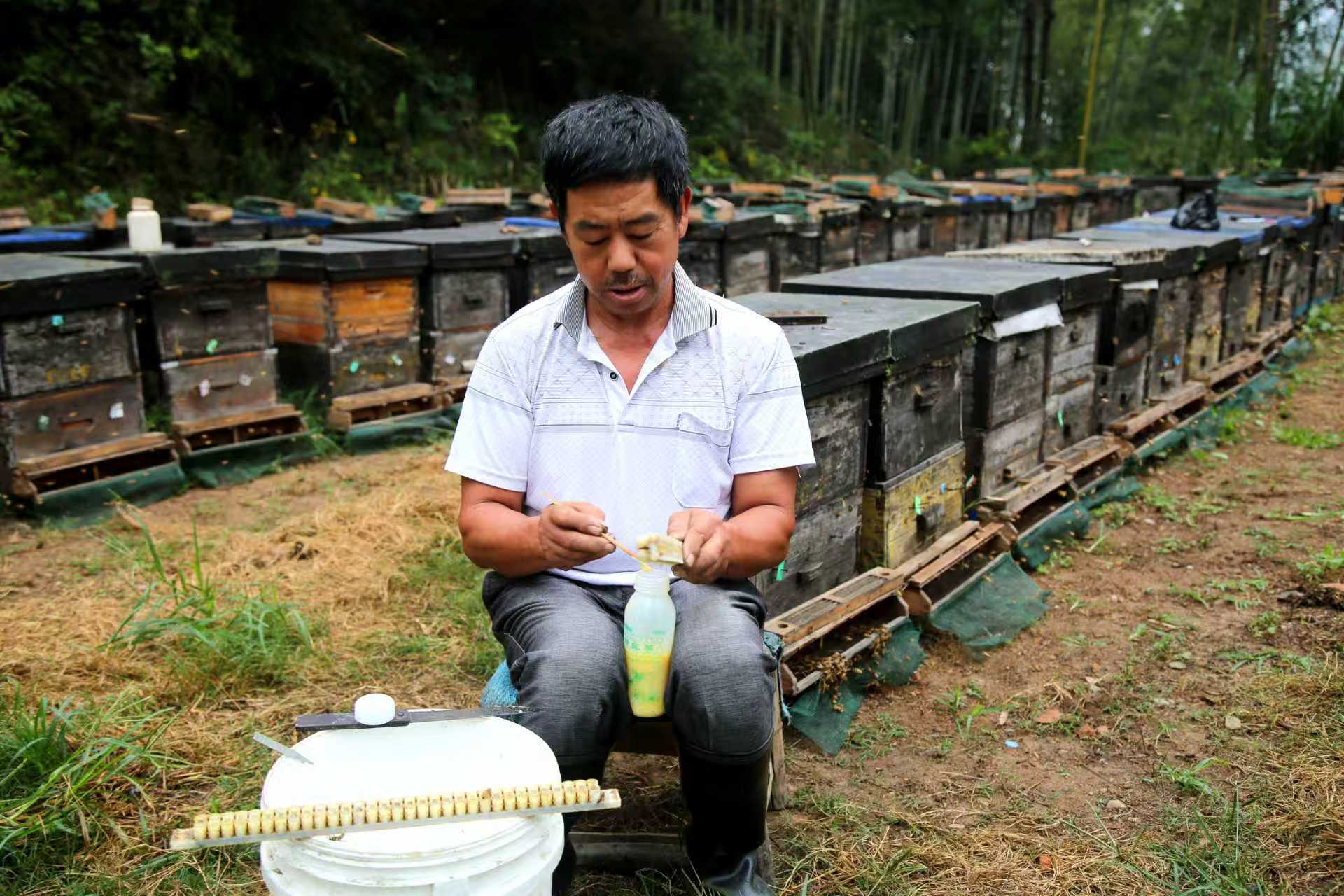 “这些都是养蜂人每天要做的活儿,很繁琐,没完没了,天天重复,没耐心是做不成的。”熊成元一边工作,一边与记者随聊,“今天主要是提取蜂王浆,摇蜂蜜不是天天做,得好几天摇一次。”
