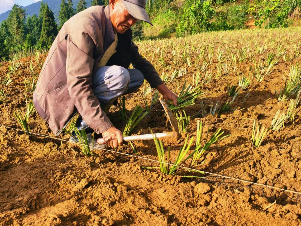 “拉沟要直,株距得准,这样种苗才能长得匀!”清晨六点半,村民老刘已在石菖蒲种植田里忙活,他循着标线将种苗稳稳栽入土中,动作娴熟又认真。谈及种植石菖蒲的变化,老刘满是感慨:“以前种玉米,一年忙到头也就够个温饱,现在种石菖蒲,收购价稳,管护还省心,日子踏实多了。”