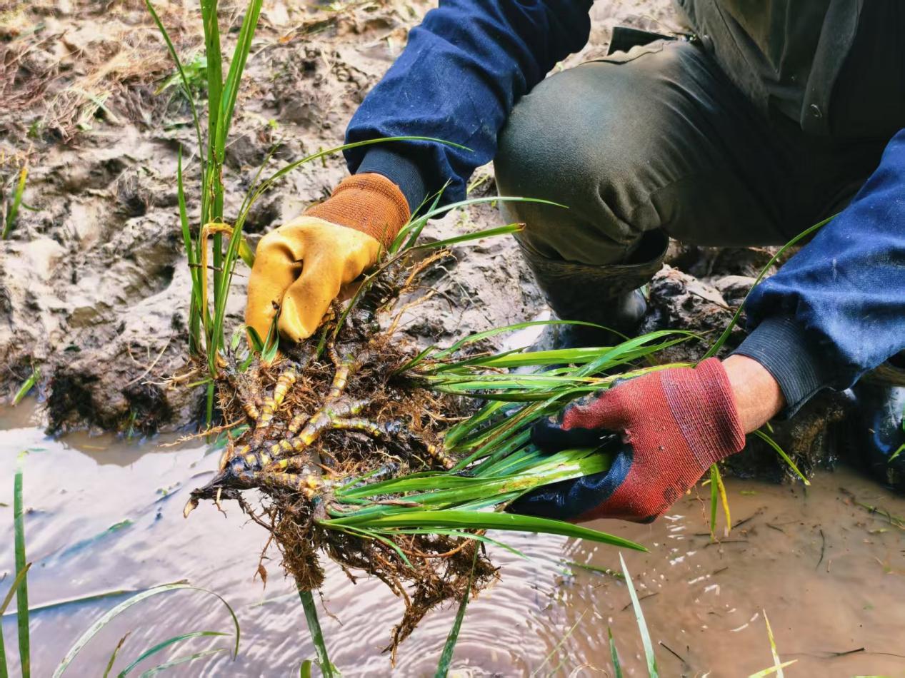 “这金贵药材得养足四年才够火候,挖的时候得像捧宝贝似的,顺着根须慢慢刨,可不能伤了它的‘元气’!”田埂那头,老徐半蹲在泥泞的田沟里,指尖轻轻拂去石菖蒲根部的湿泥,一丛根系盘错的植株便露了出来。眼下,他种的8亩石菖蒲正逢采收季。“现在干品市场价能到60元一公斤,我今年先收一亩试试水,算下来大概有8000元左右的收入。”老徐擦了擦额头的汗,语气里满是期待。田间地头,和老徐一样忙碌的农户还有不少。弯腰、刨土、整理、装筐,动作娴熟又仔细,曾经不起眼的石菖蒲,如今成了村民们手中名副其实的“致富草”。