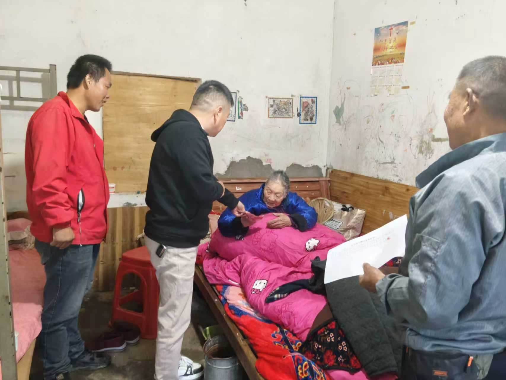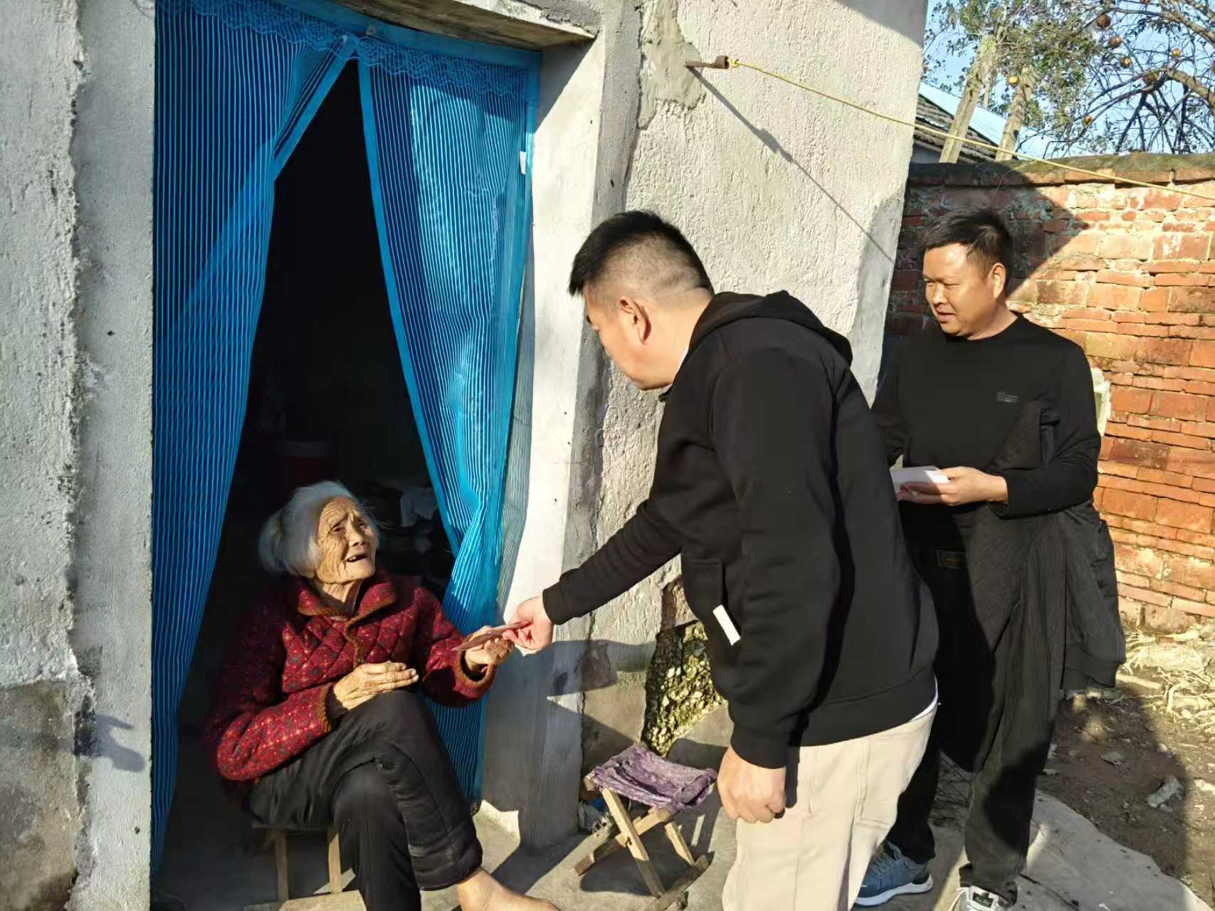 “杨奶奶,我们来看您啦!祝您重阳节快乐,身体硬朗,笑口常开!”在百岁老人杨守华家中,大庙镇山南村党总支书记汪玉超握着老人的手,仔细询问老人的饮食起居、健康状况以及家庭生活情况,耐心倾听老人讲述过去的岁月故事。看到老人精神矍铄、思路清晰,大家十分欣慰,叮嘱老人家属要悉心照料老人的日常起居,关注老人的身体变化,让老人在舒适安心的环境中安享晚年。同时,他还让随行的村干部和小组长要切实做好老年群体的服务保障工作,主动关心老人的实际需求,及时为老人排忧解难,让老人们都能感受到党和政府的关怀。