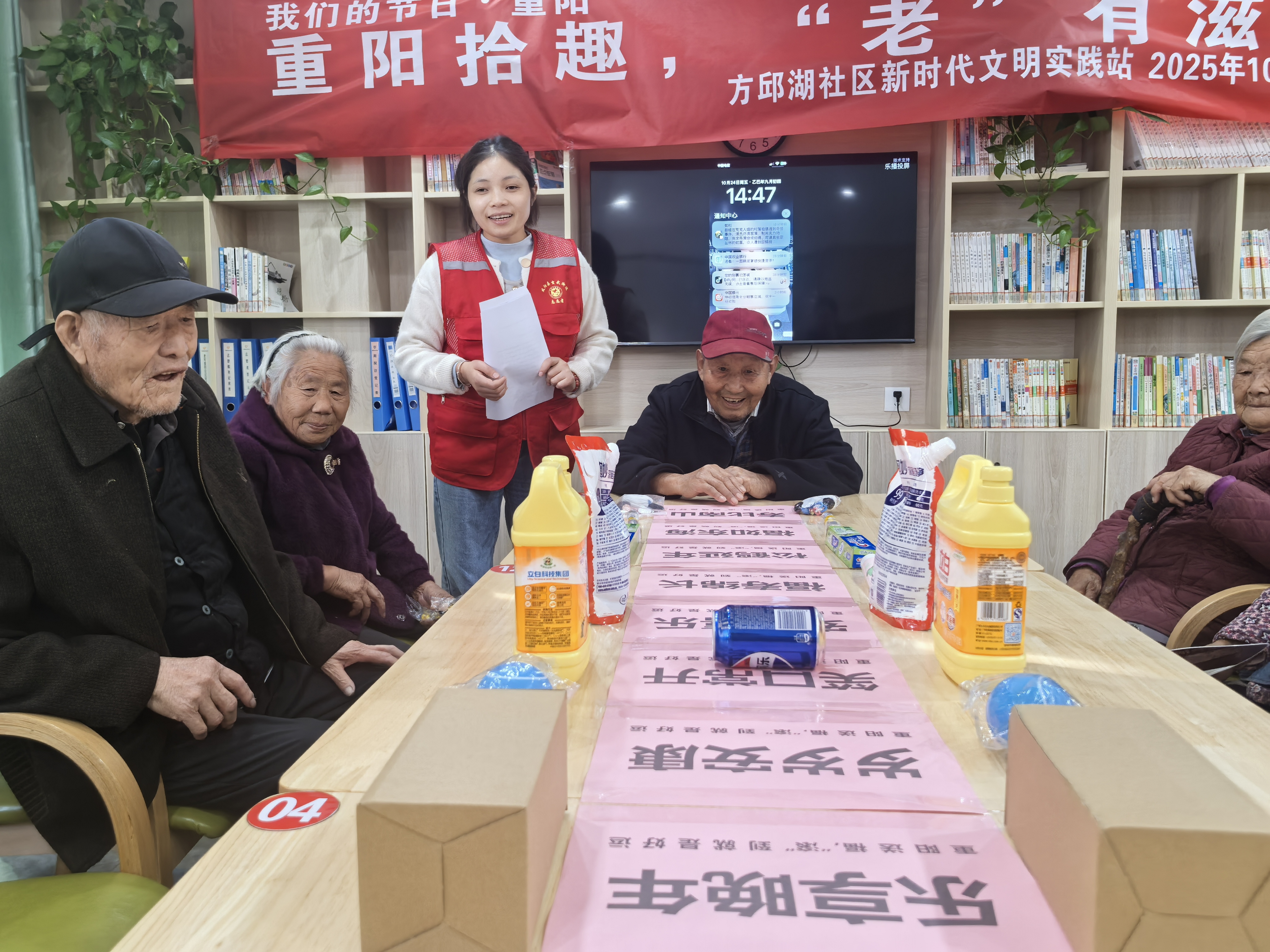 岁岁重阳,今又重阳。为丰富社区老年人精神文化生活,弘扬尊老敬老传统,让长者们度过一个欢乐祥和的节日,10月24日下午,滁州市凤阳县玄武街道方邱湖社区在老年助餐点开展“我们的节日・重阳——重阳拾趣,‘老’有滋味”主题活动,社区高龄老人欢聚一堂,共庆佳节。