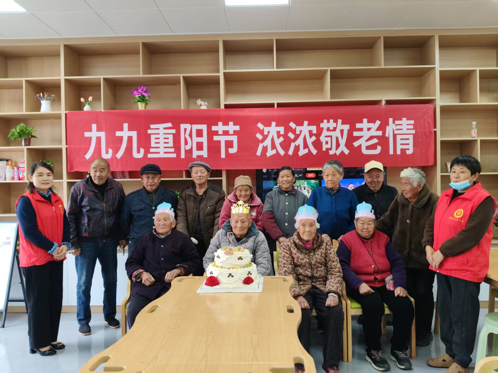 上午9时,老人们陆续到场,志愿者们逐一上前搀扶就座,与他们亲切交谈,询问生活近况。随后便为每位老人送上切好的蛋糕,并细心协助行动不便的长者用餐。82岁的张奶奶捧着蛋糕,眼眶湿润地说:“每年重阳节村里都记挂着我们,这蛋糕甜在心里!”老人们边品尝边拉家常,幸福的笑容洋溢在脸上。志愿者们还为老人拍摄了合影,用镜头记录下这一温馨时刻。活动期间,卫前村新时代文明实践站特别邀请村卫生院的医生们为老人提供免费健康咨询,并叮嘱秋季注意保暖和饮食安全。