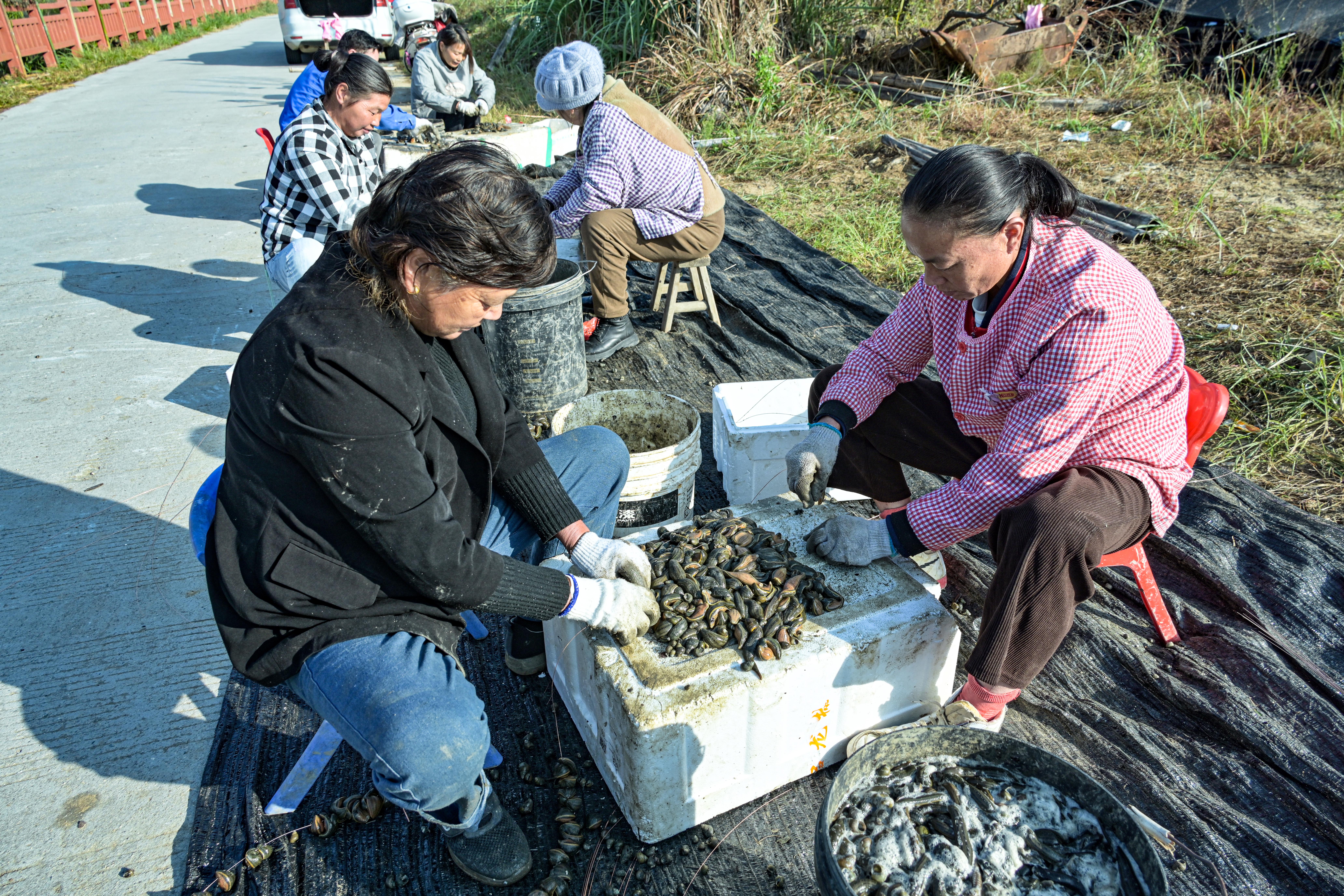 10月28日,岳西县菖蒲镇溪沸村特色养殖基地养殖的水蛭获得丰收,当地村民正在晾晒水蛭,制成成品销往市场。水蛭俗称蚂蟥,是一种中药材,销售前景广阔,是当地农民致富的“软黄金”“摇钱树”。