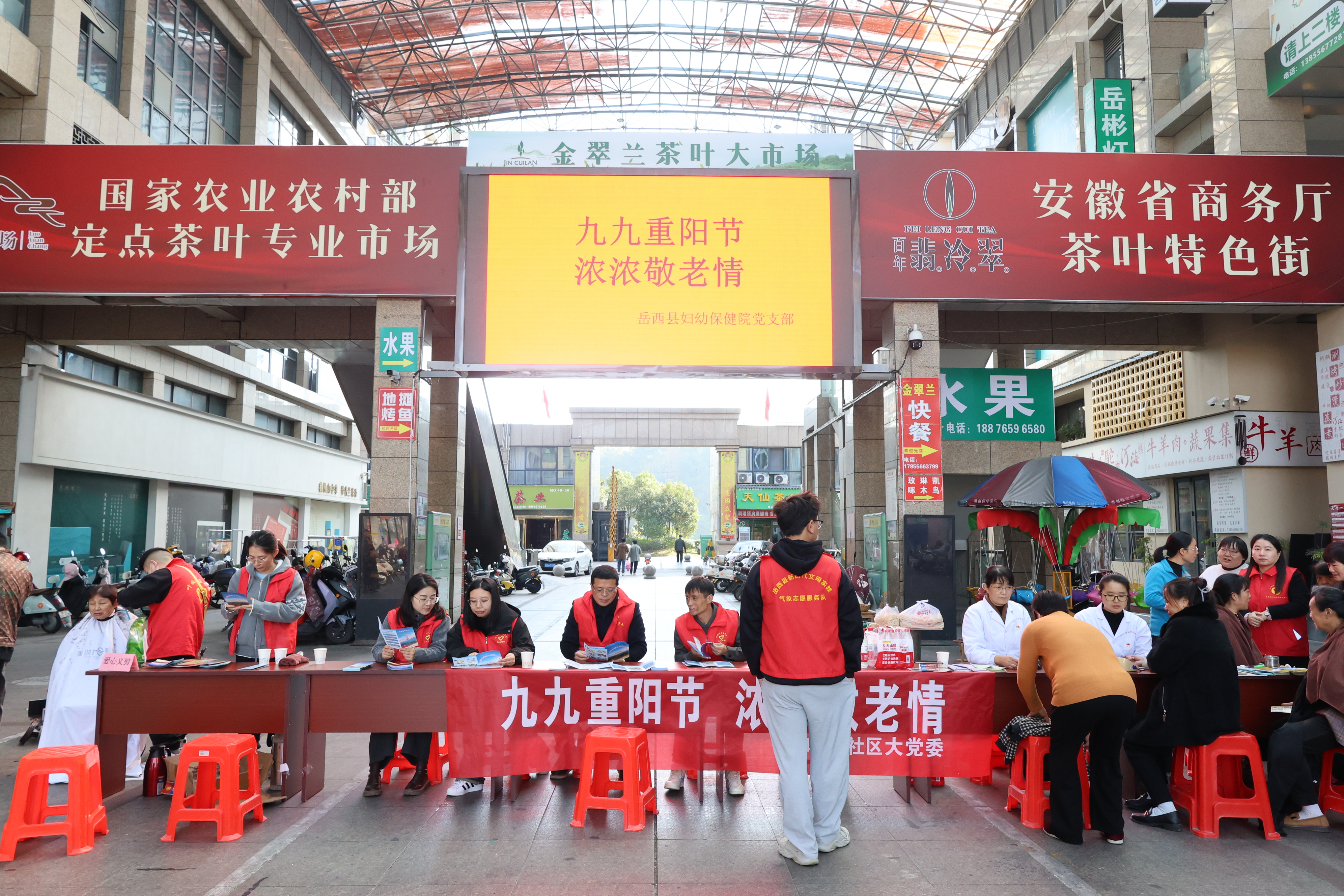 10月29日,重阳佳节,岳西县妇幼保健院党支部、退休干部职工党支部与叶坂社区在金翠兰广场结对共建,以“情暖重阳,敬老爱老”为主题开展健康服务活动,聚焦中医特色服务,为社区长者送去“家门口”的贴心关怀。
