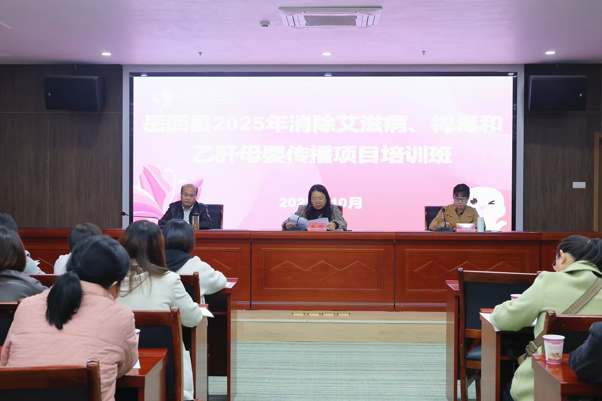 10月30日,岳西县2025年消除艾滋病、梅毒和乙肝母婴传播项目培训班在县妇幼保健院举办。全县各医疗卫生单位负责人、项目专家组及项目各模块工作人员120余人参加培训,县卫健委党委委员、副主任王珍到会指导并讲话。