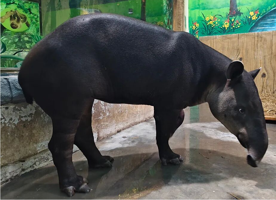 为给中美貘营造良好的环境,动物园特意在美洲馆内展区的墙壁上绘制了逼真的热带雨林壁画,蓝天白云下,一条蜿蜒的小溪穿流而过,仿佛将美洲雨林直接搬到了临泉。地面铺设有柔软的干草垫,室内温度也始终保持在25度左右,为中美貘提供舒适的休息环境,让它在他乡也能感受到家的温暖。
