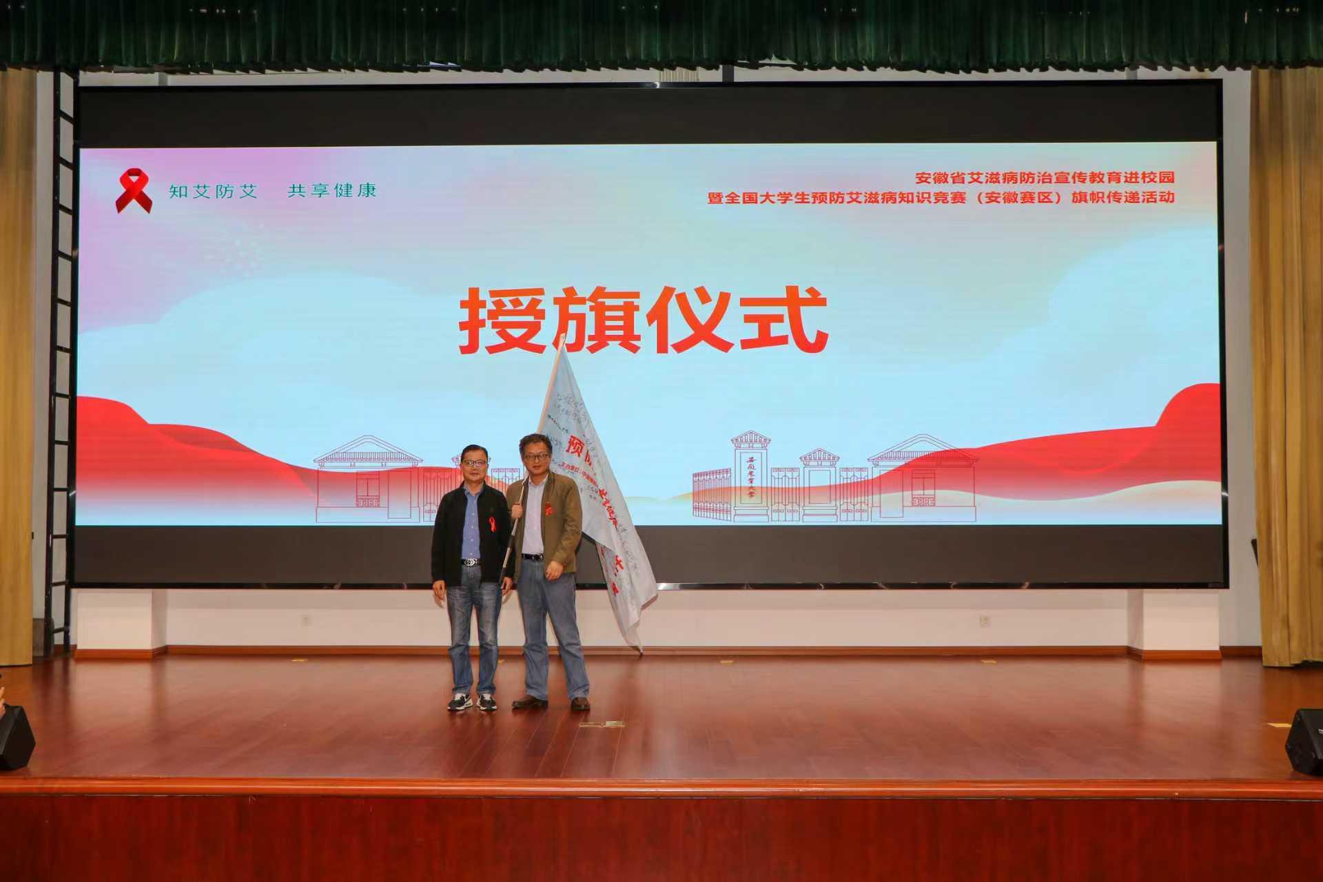 “在公共场所共用马桶、餐具、浴巾等物品,会不会感染艾滋病?”“目前我国艾滋病感染最主要的方式是什么?”11月5日下午,一场关于艾滋病的互动竞答在安徽农业大学图书馆报告厅热烈开展。当日,由省疾控局、省教育厅、中国预防性病艾滋病基金会指导,省疾控中心、省性病艾滋病防治协会主办,安徽农业大学承办,合肥市疾控中心、蜀山区疾控中心协办的安徽省艾滋病防治宣传教育“进校园”暨全国大学生防艾知识竞赛(安徽赛区)旗帜传递活动在该校成功举办,刮起了一股“知艾防艾 共享健康”的校园新风。