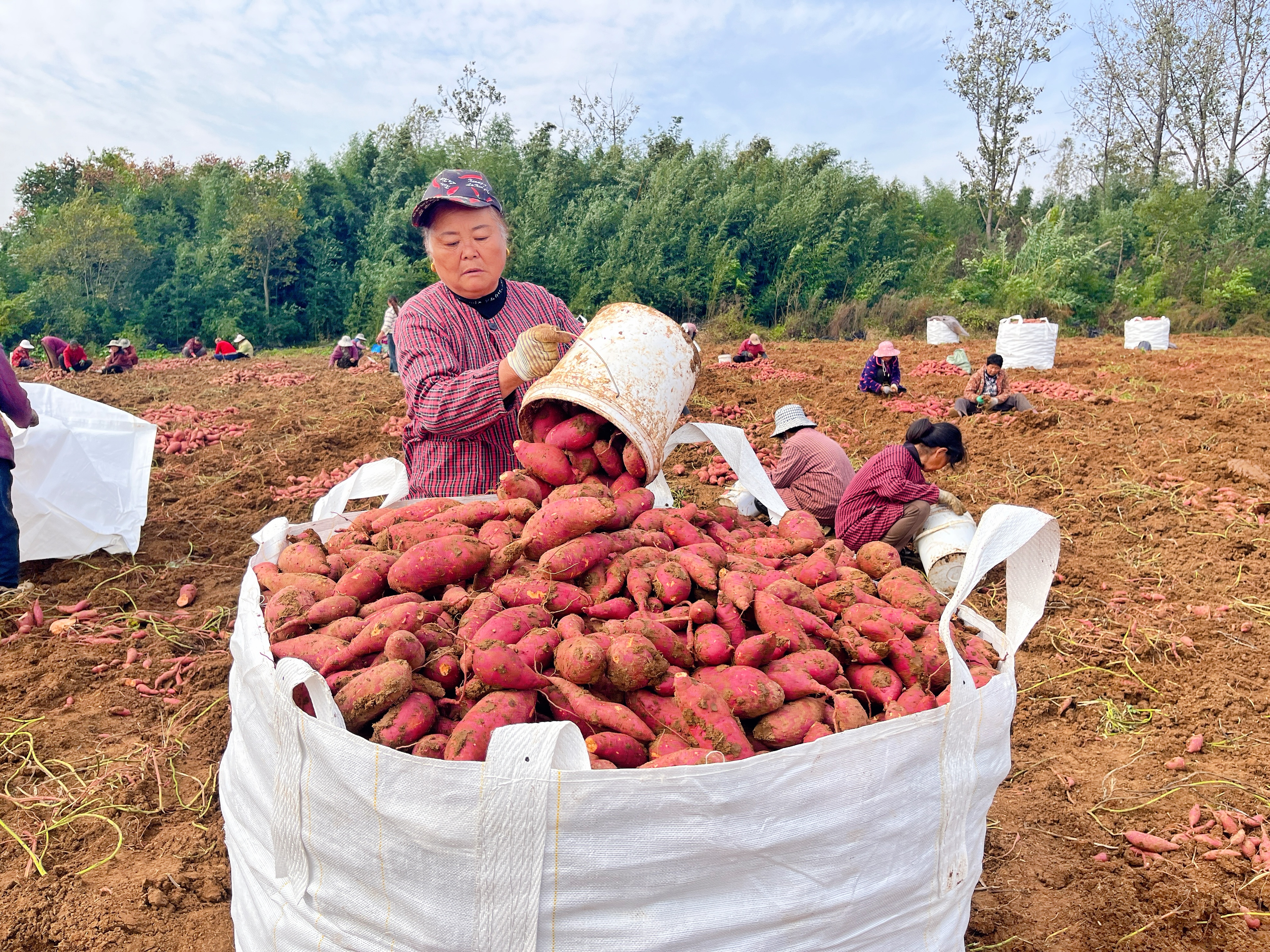 眼下,走进安徽省凤阳县殷涧镇宋集村的种薯试验田内,红薯收获机在田地里来回穿梭,一颗颗形状匀称、红彤彤的红薯破土而出,村民们正忙着给新出土的红薯去泥、分拣、装袋、搬运……一派繁忙的丰收画卷正徐徐展开。