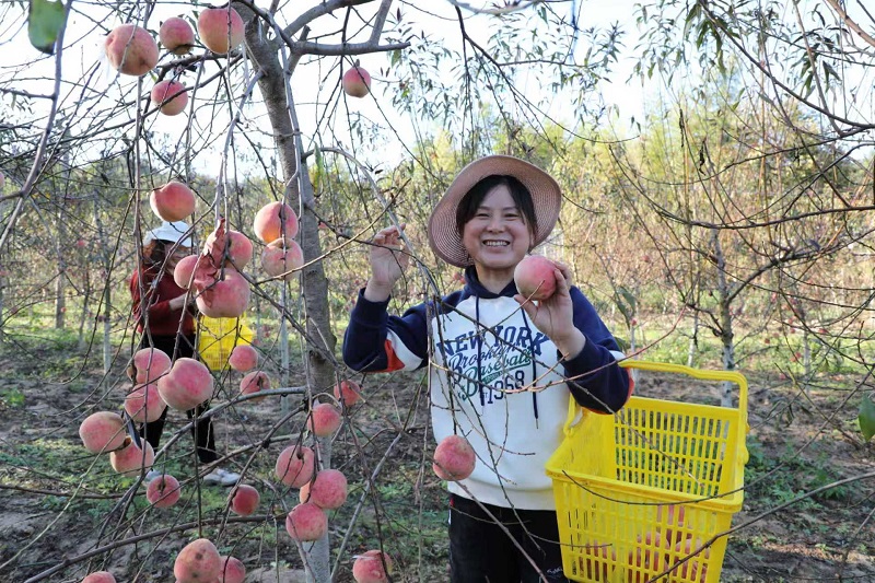 随着冬桃进入采摘期,入园采摘人数逐渐攀升,聘请帮忙务工的群众也日渐增多。目前,农场用工超过10人,人均增收2000元以上。