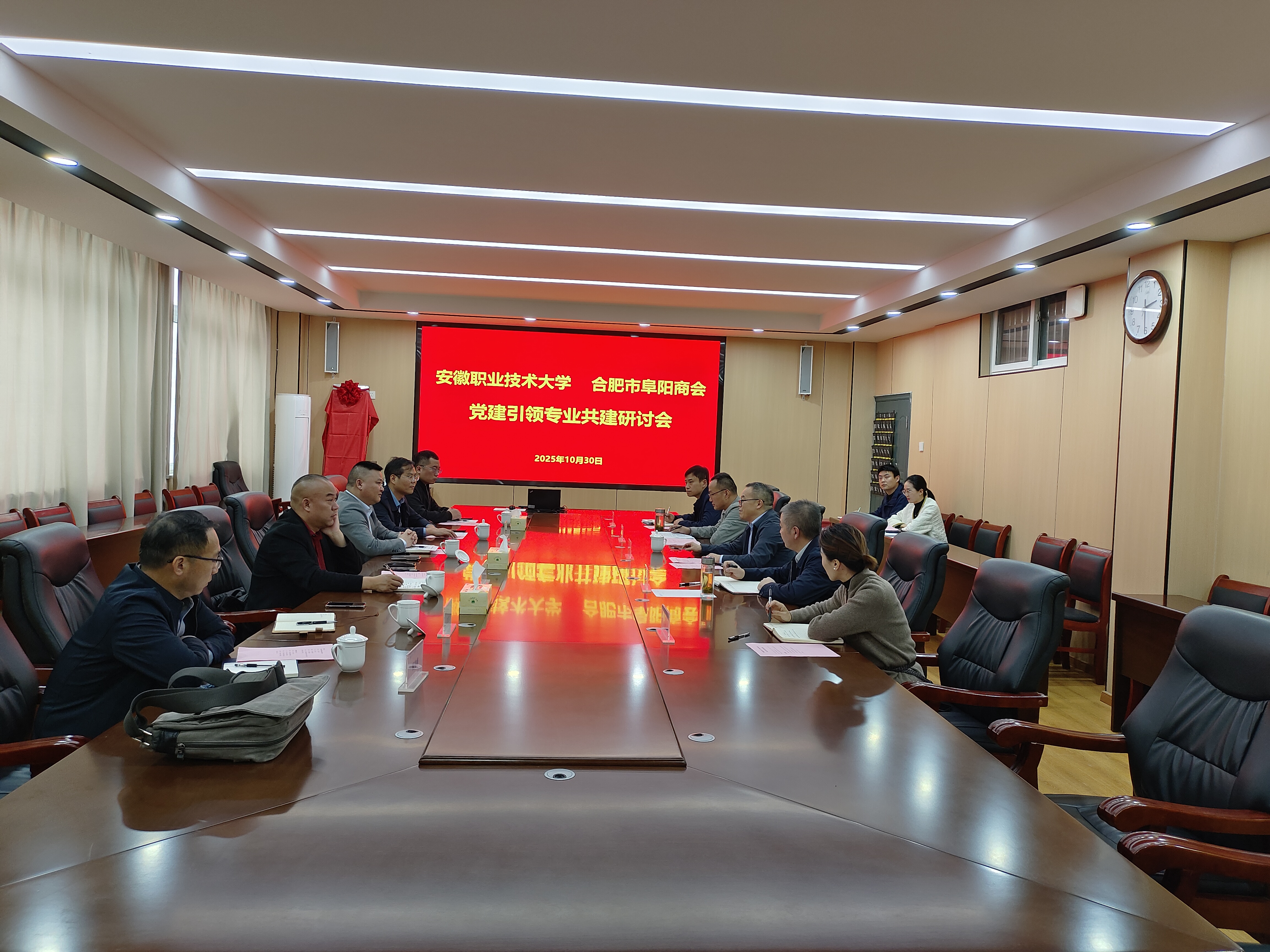 研讨会上,双方代表围绕如何将党建工作与专业建设、人才培养深度融合进行了深入交流和探讨。合肥市阜阳商会党支部负责人介绍了商会及其会员单位的发展状况、行业分布以及对专业技术人才的迫切需求,强调了党建引领在凝聚企业力量、规范行业发展中发挥的核心作用。商会方面表示,希望通过与高校的深度合作,为企业精准输送高质量技术技能人才,同时为在校学生提供更贴近产业实际的实习实训平台和就业渠道。