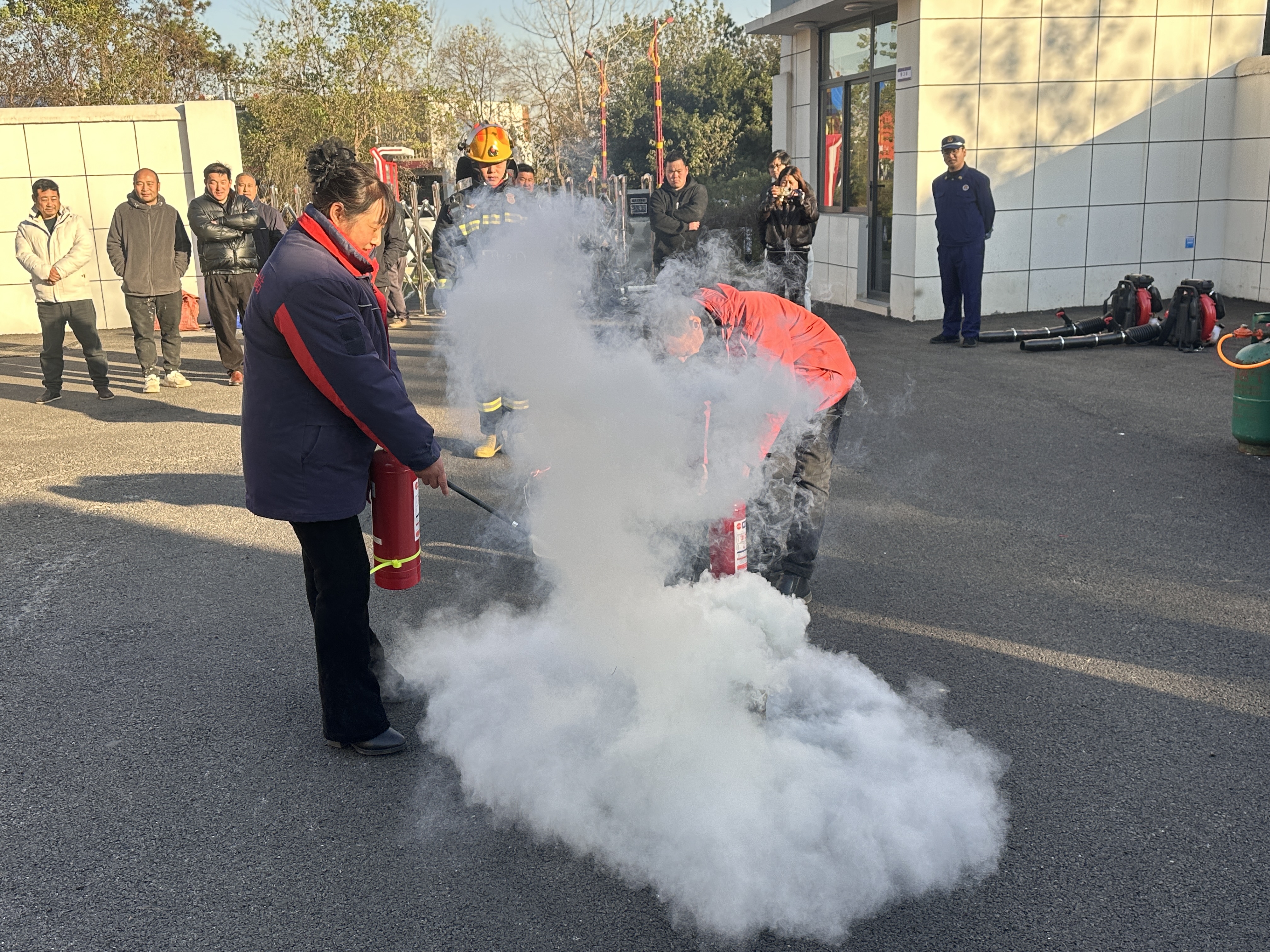 为将理论知识转化为实战技能,殷涧镇在宗教活动场所组织了6场消防安全实战演练。宗教教职人员和信教群众在专业人员的帮助下,亲身体验了报警、初期火灾扑救、组织疏散逃生等全过程。活动重点培训了灭火器的正确操作方法,并针对宗教场所建筑特点,说明了疏散路线选择、防烟措施等关键自救逃生常识。专业人员通过实操实训,有效增强了参与者的临场心理素质和协同应对能力。