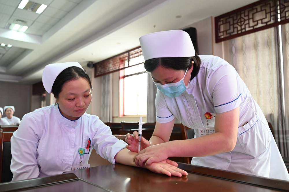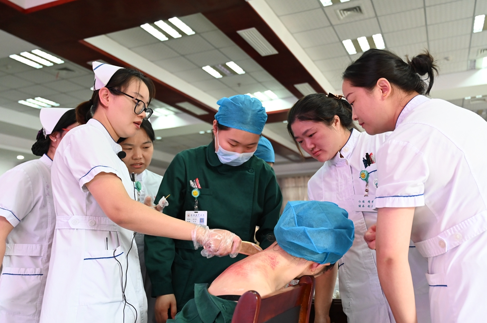 培训提能,考核验效。为确保中医护理技能落地见效,岳西县以“考核准入”为抓手,筑牢服务质量防线。县中医院已坚持二十余年的护理三基技能考核,采用“抽签定项+现场打分”模式,心肺复苏等急救技能为“必考题”,艾灸、拔罐等中医项目占比达40%。“演示足三里贴敷并说明辨证依据”“模拟气道异物梗阻急救”,考官现场出题点评,全程把控质量。