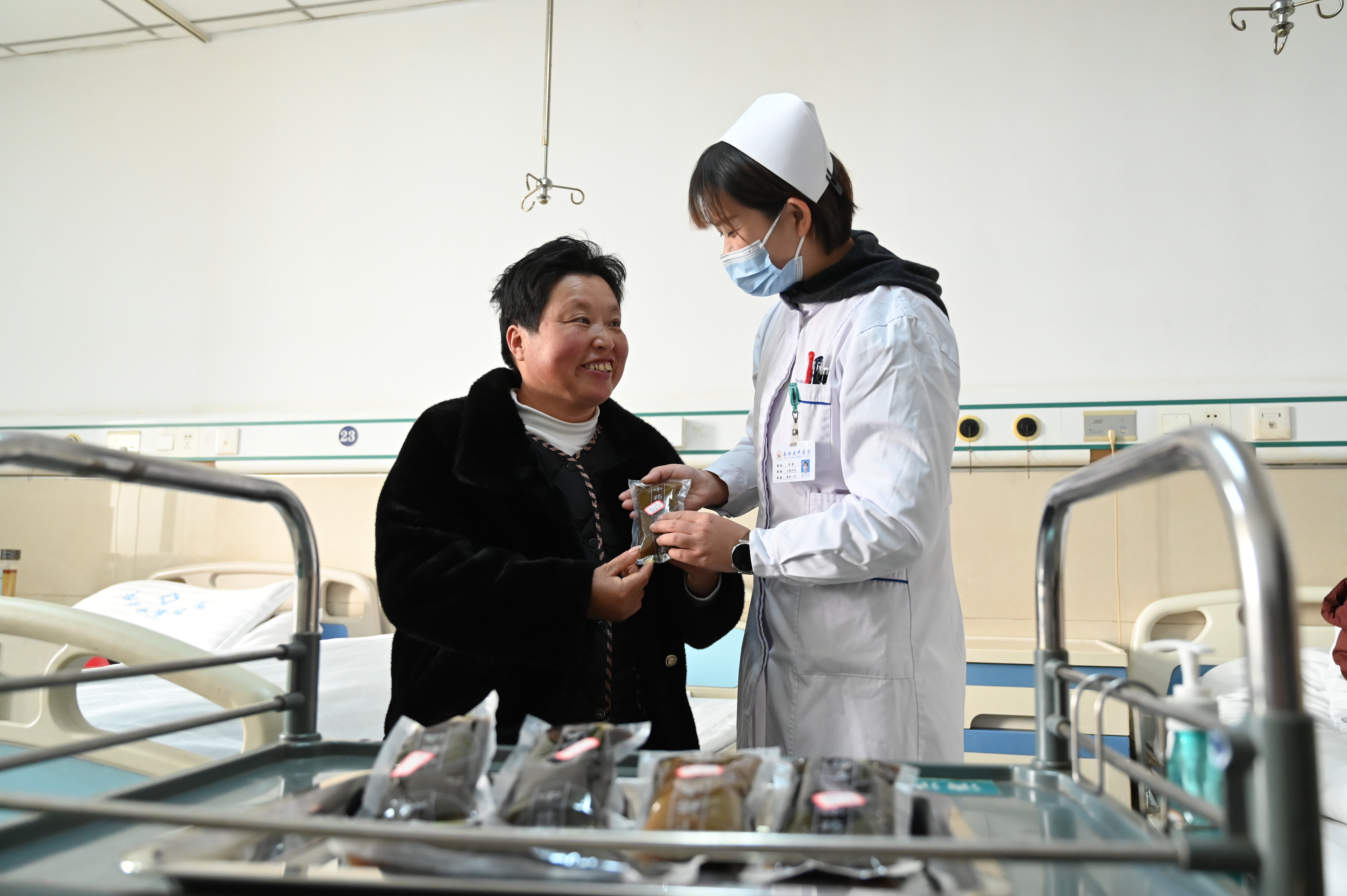 对于已感染流感的患者,中医药精准治疗的优势愈发凸显。在县中医院病房内,护士每天按时将熬制好的中药汤剂送到患者床头。这些汤剂由专家组根据患者具体症状辨证施治,实现“一人一方”的个性化诊疗。“喝了两天中药,烧退了、咳嗽轻了,效果真不错!”康复患者李先生的点赞,是对中医药疗效的生动认可。数据显示,经中医药干预后,流感患者症状缓解率显著提升。