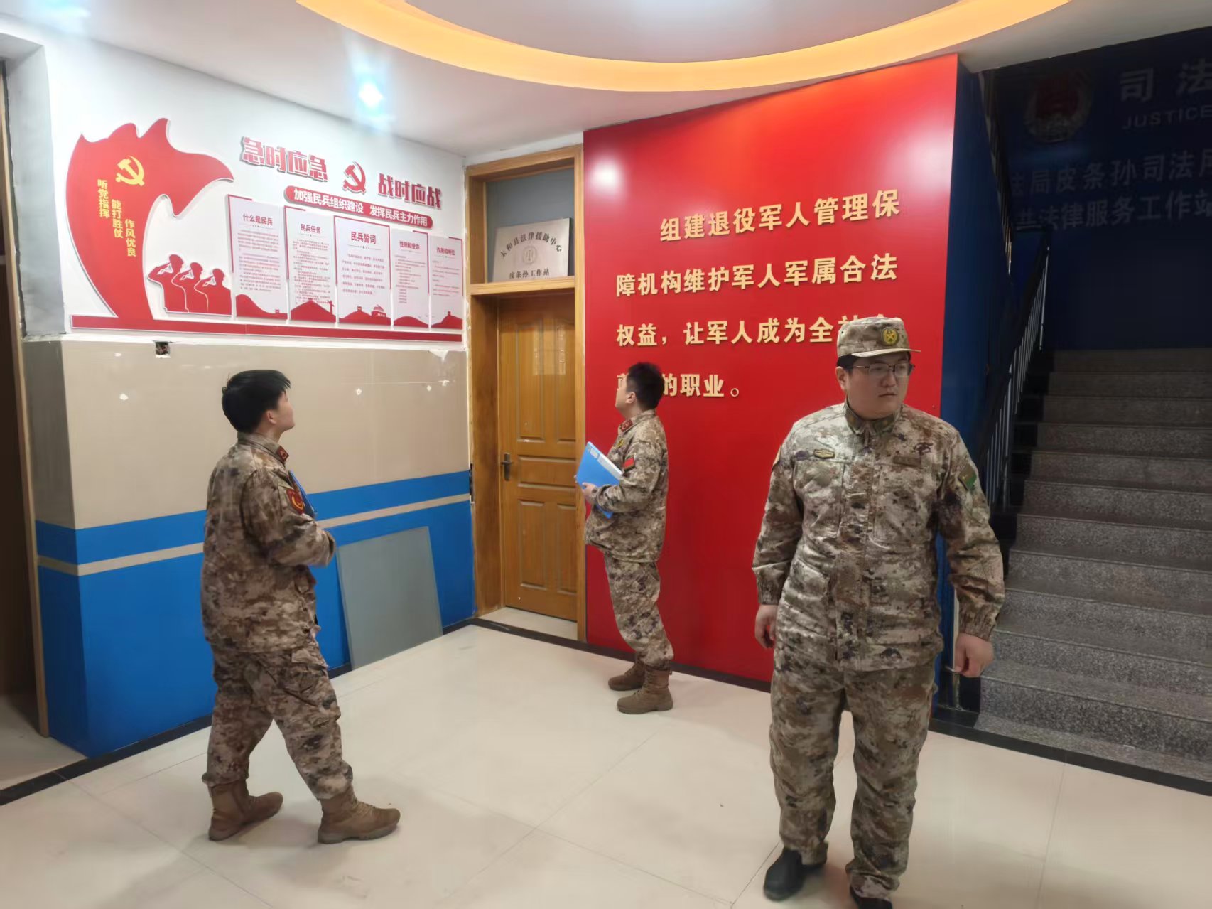 检查组采取“听汇报、查台账、看现场、问情况”的方式,深入各村民兵连,重点围绕村民兵连硬件设施建设、各项制度落实情况以及相关功能场所运行管理状况展开检查。在台账查阅环节,检查组逐一翻看了各村在征兵工作、民兵整组、政治教育、参与地方经济建设与维护社会稳定等重点工作的台账资料,详细了解各村武装工作的任务完成情况、流程规范程度和日常管理细节。