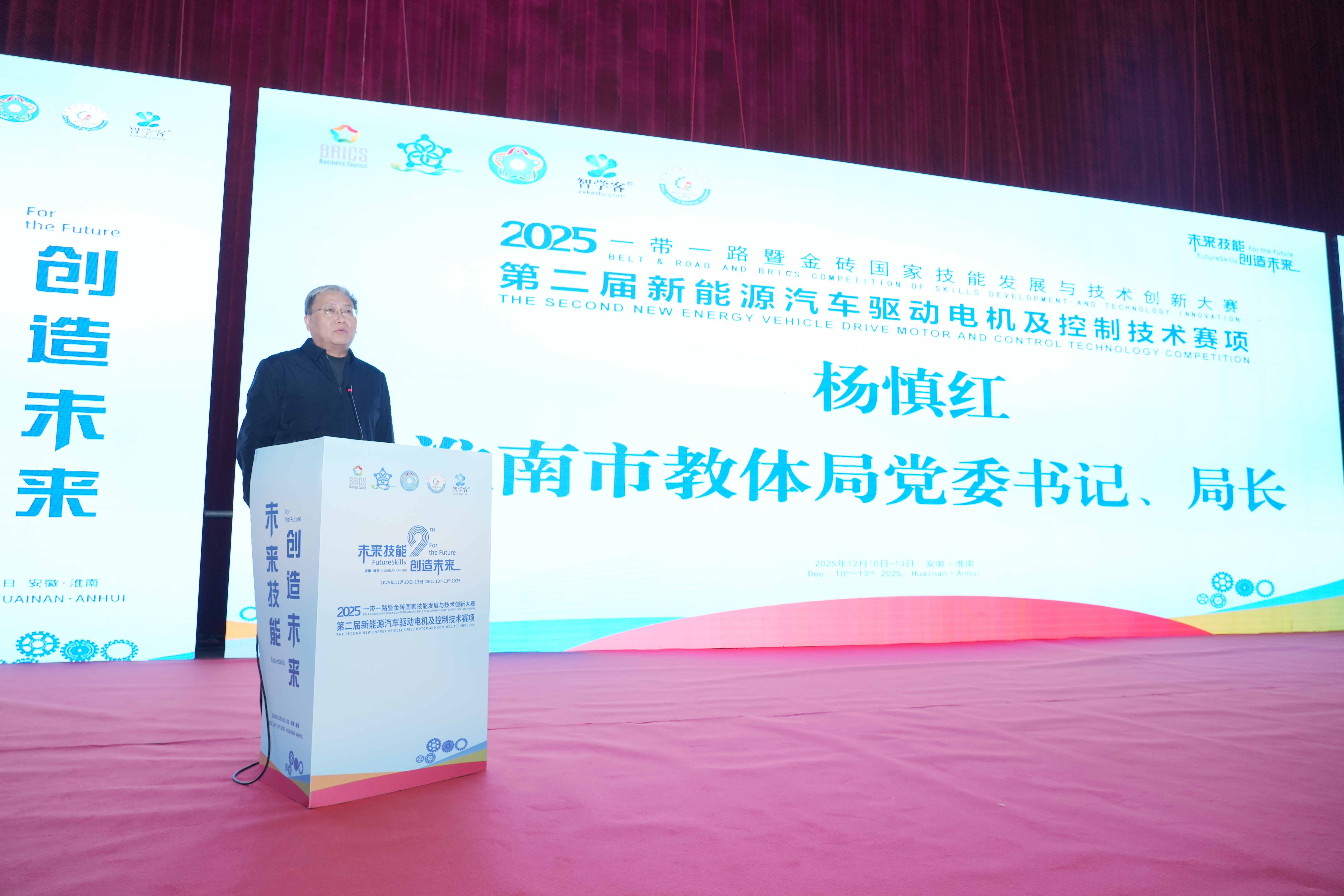 12月10日至13日,2025“一带一路”暨金砖国家技能发展与技术创新大赛第二届新能源汽车驱动电机及控制技术赛项(以下简称“大赛”)在安徽机械工业学校举行。