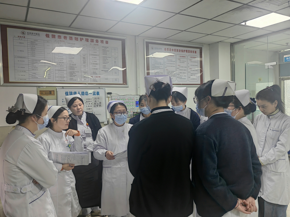 据悉,该患者因活动后心慌、胸闷加重一周入院,中医诊断为“心悸病(水饮凌心)”,心脏彩超提示心功能明显受损。护理部主任王爱新带领神经内科护士长储亭亭及科室护理骨干,通过“望、闻、问、切”四诊合参明确证型,为护理方案调整提供精准依据。