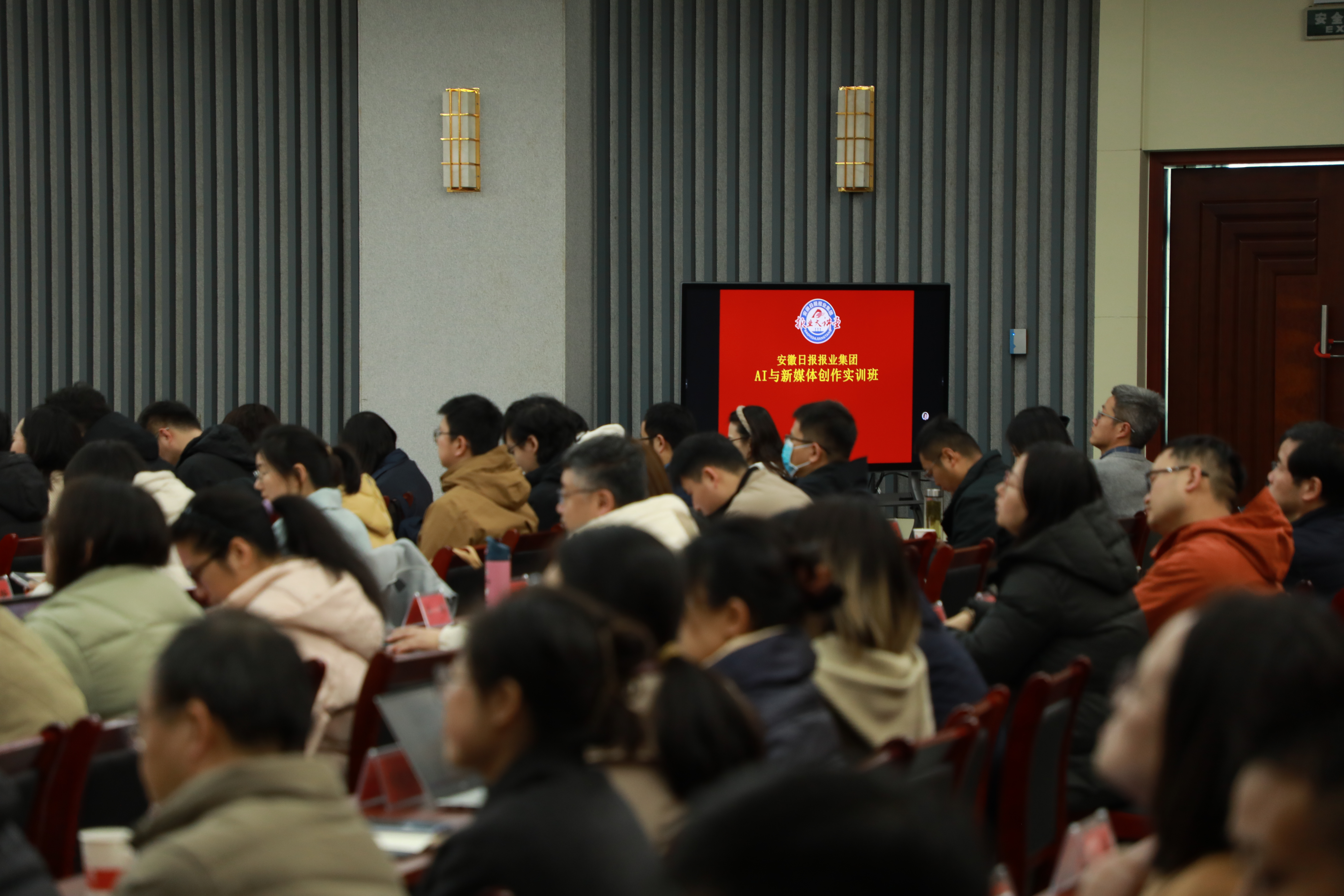 按照推进系统性变革实施方案部署,12月16日,由安徽日报报业集团主办、安徽日报大教培全媒体中心承办的“报业大讲堂·AI与新媒体创作实训班”,在安徽报业大厦四楼会议室开班,集团处以上干部、一线采编业务骨干近300人参训。