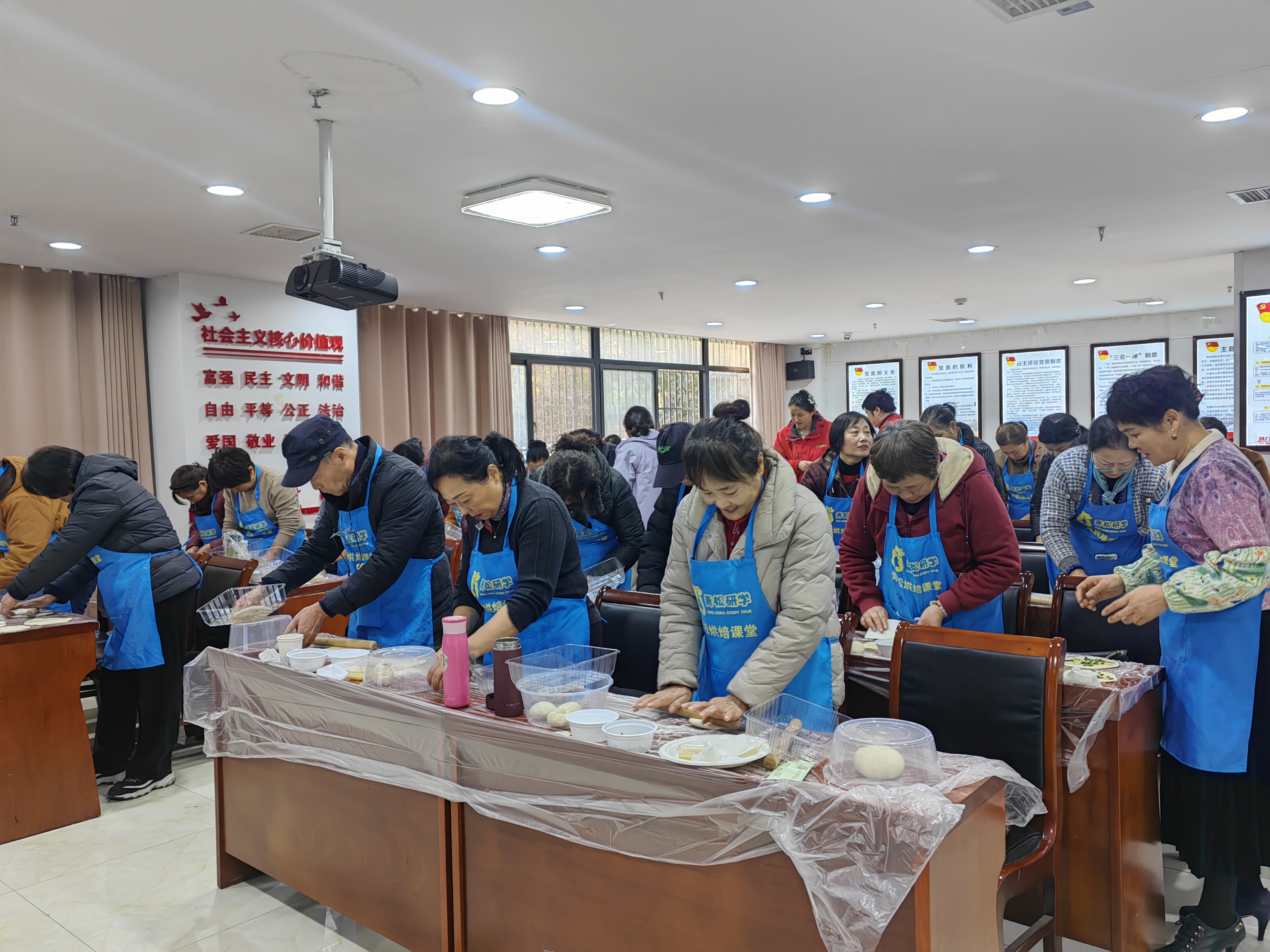 12月16日下午,合肥市蜀山区荷叶地街道浅水湾社区党群服务中心,飘着满室的葱油香,浅水湾社区联合街道社工站、社区妇联、青松集团一起,把一场热热闹闹的葱油饼制作活动,办到了街坊们的家门口,不少住在附近的居民都乐呵呵地赶来了。