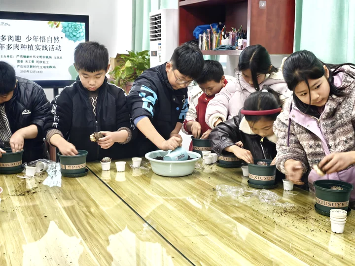 为培养青少年热爱自然、爱护植物的意识,丰富课余实践体验,2025年12月18日下午,由肥西县民政局、严店镇新时代文明实践所、严店镇社会事务服务中心、严店社区新时代文明实践站携手民欣社工举办的“手植多肉趣 少年悟自然”青少年多肉种植活动,在严店镇综合文化站温馨开展,多名小朋友踊跃参与,在指尖劳作中感受生命温度。