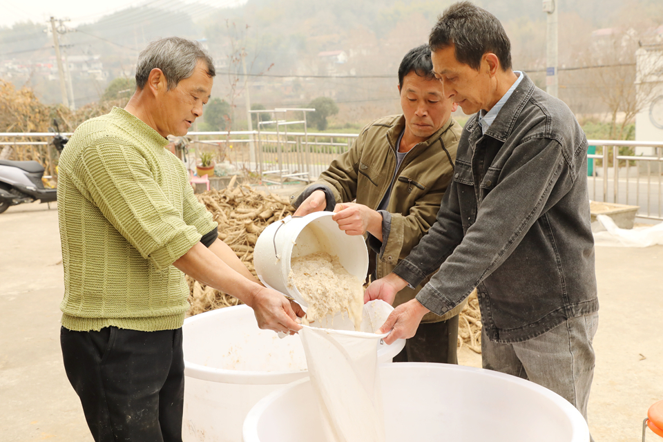 12月21日,岳西县店前镇中心村农民正在采收、加工葛根。