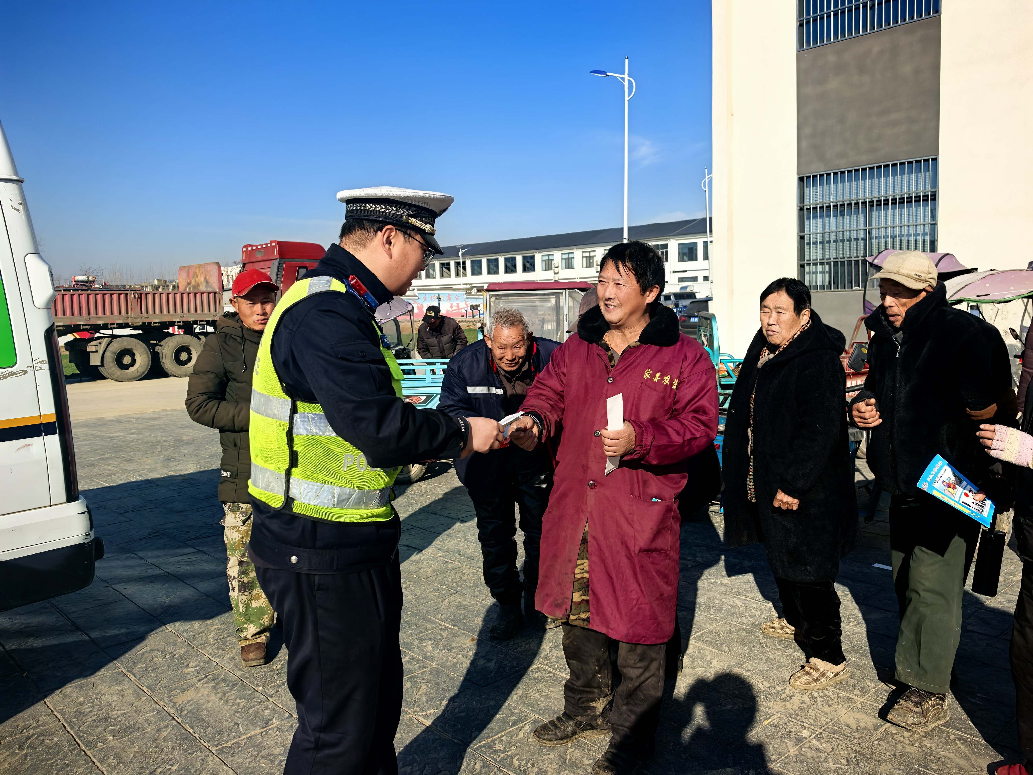 12月26日上午,定远县交警大队联合县政法委、炉桥镇政府及炉桥中队,在炉桥镇河北魏村、滨湖村同步开展交通安全“三地同宣”活动,将安全出行理念精准送达群众身边。