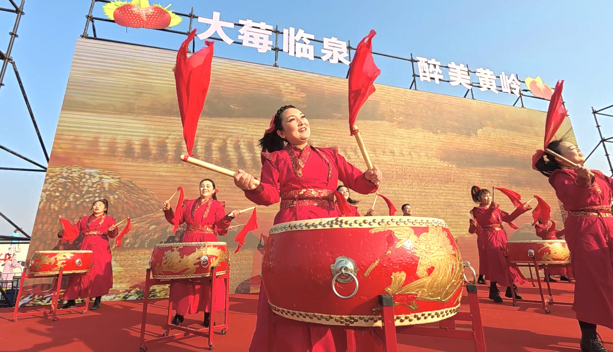 一年一度的草莓节正是展示产业成果、共庆丰收的时刻。在开幕式上,豫剧《花木兰》、黄梅戏《天仙配》等文武大戏轮番上演,肘阁抬阁、舞狮等民俗表演惊艳亮相,歌舞《行香子》轻盈灵动,魔术《魔手神采》引得阵阵惊呼,掌声、叫好声此起彼伏,不少人拿出手机拍照留念,记录下精彩瞬间。