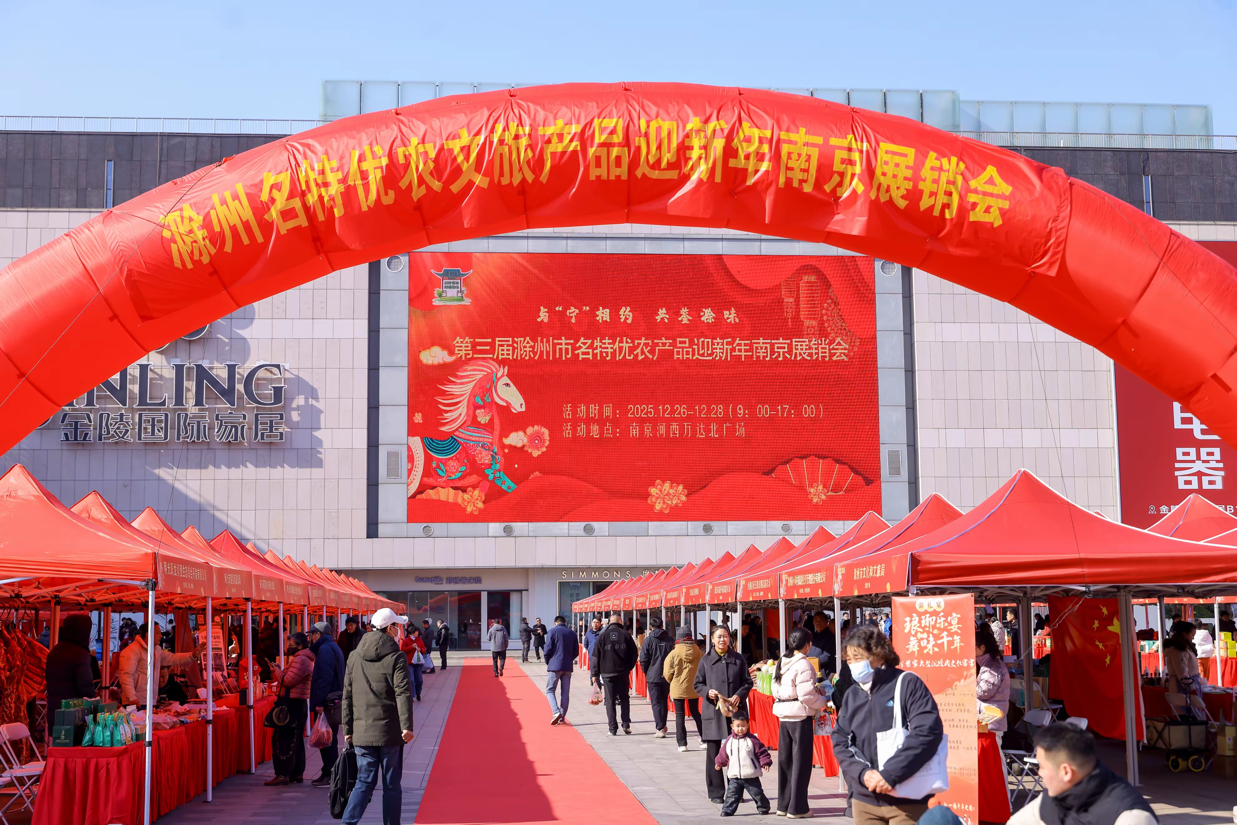12月26至28日,由滁州市农业农村局、滁州市文化和旅游局主办,滁州市供销社协办的第三届滁州市名特优农产品迎新年南京展销会在南京市建邺区万达广场顺利举行。本次展销会以“与‘宁’相约 共鉴滁味”为主题,活动内容包括宣传推介与展示展销两大板块,旨在提升“滁字号”农产品在长三角地区的市场份额,增强其品牌影响力与市场竞争力。
