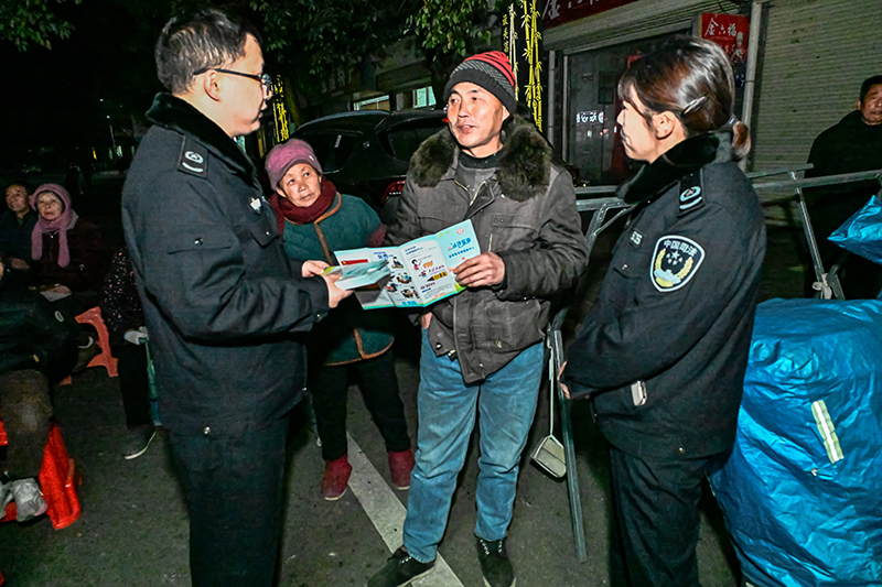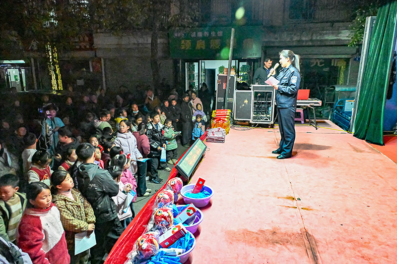 演出间隙,司法所工作人员与派出所民警向现场群众发放法治宣传手册,围绕群众关心的赡养继承、劳资纠纷、电信诈骗等问题进行现场答疑。针对老年群体易成为诈骗目标的特点,工作人员用通俗易懂的语言讲解“保健品骗局”“养老投资骗局”的套路;对于村民咨询的法律援助相关问题,详细告知申请渠道与所需材料,引导大家遇到困难时,学会运用法律武器维护自身合法权益。同时,工作人员还重点解读了治安管理处罚法新规中与乡村治理密切相关的内容,倡导村民自觉遵守法律法规,共同维护和谐稳定的乡村秩序。