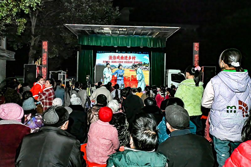 此次演出以群众喜闻乐见的黄梅戏为载体,开展“法治戏曲进乡村”主题宣传活动,将宪法、治安管理处罚法、法律援助法等法律规定及反诈小常识送到村民家门口。传统唱腔与法治元素精彩碰撞,为隆冬的乡村送来一场既接地气、又聚人气的“普法大戏”。