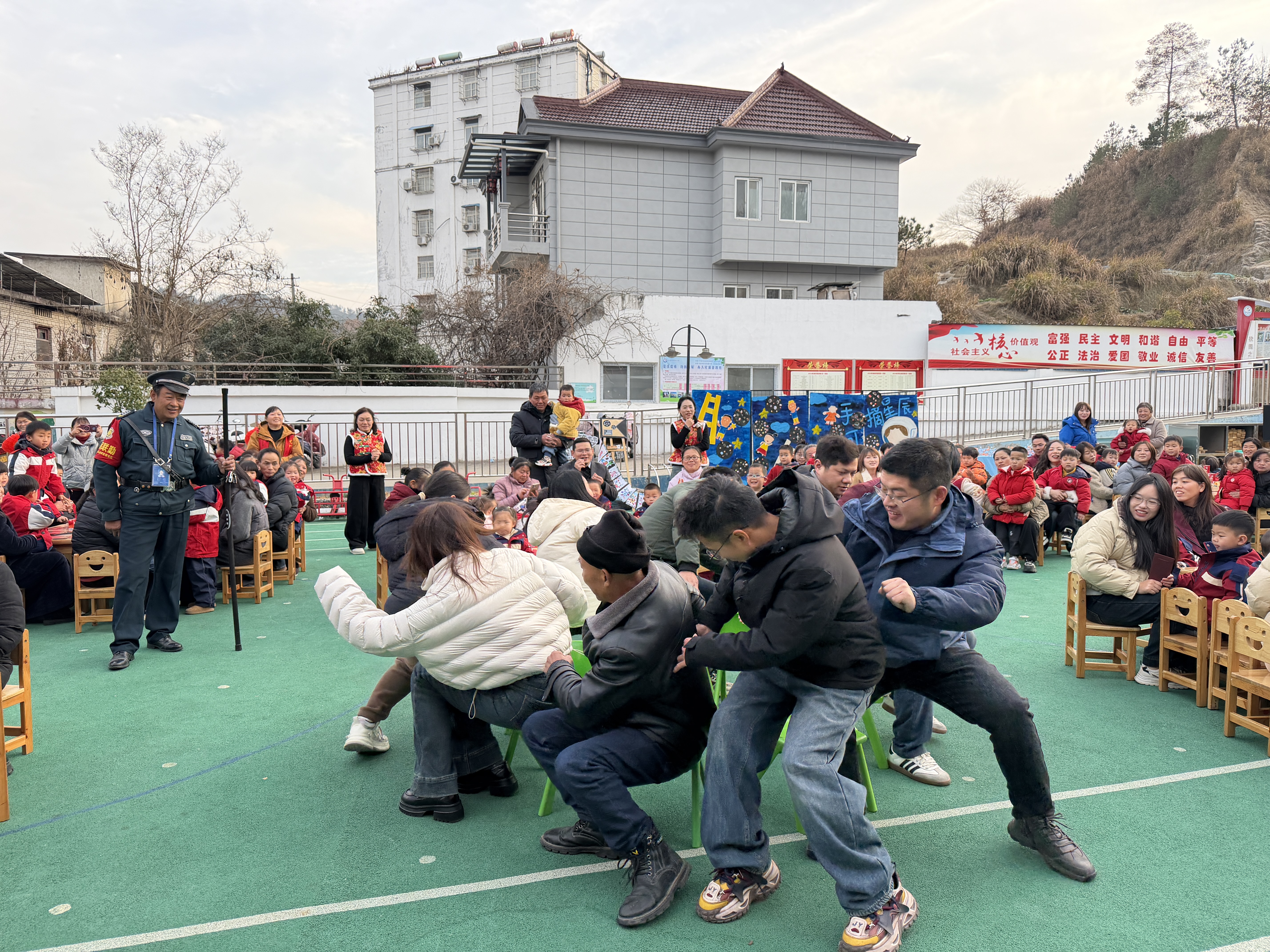 活动在一段欢快灵动的舞蹈中正式拉开帷幕。趣味游戏环节充分释放了幼儿的天性与活力,“烟火中国”集体体验活动更是让孩子们在协作互动中增进默契、凝聚力量,现场处处洋溢着喜庆祥和的节日气息。