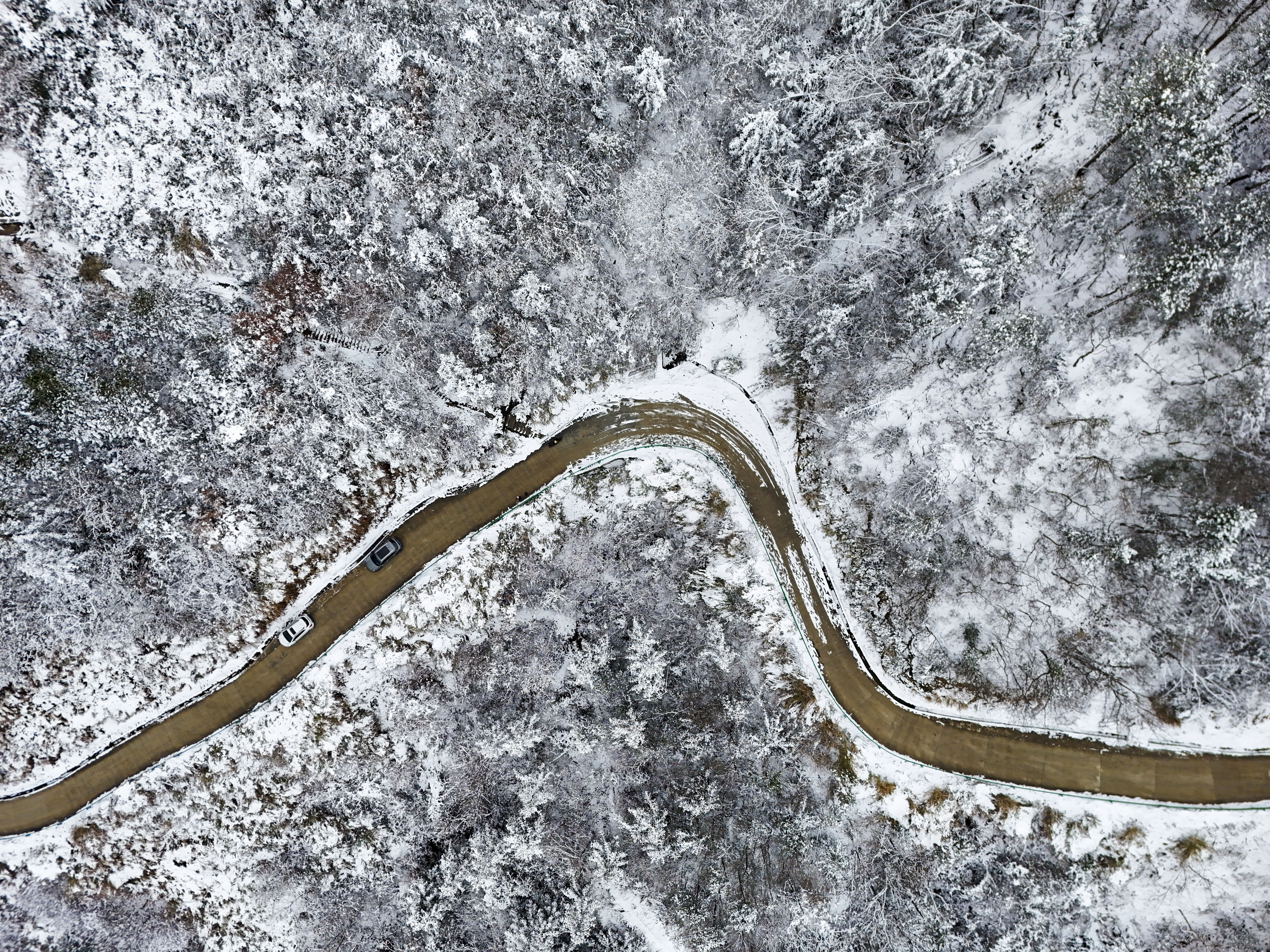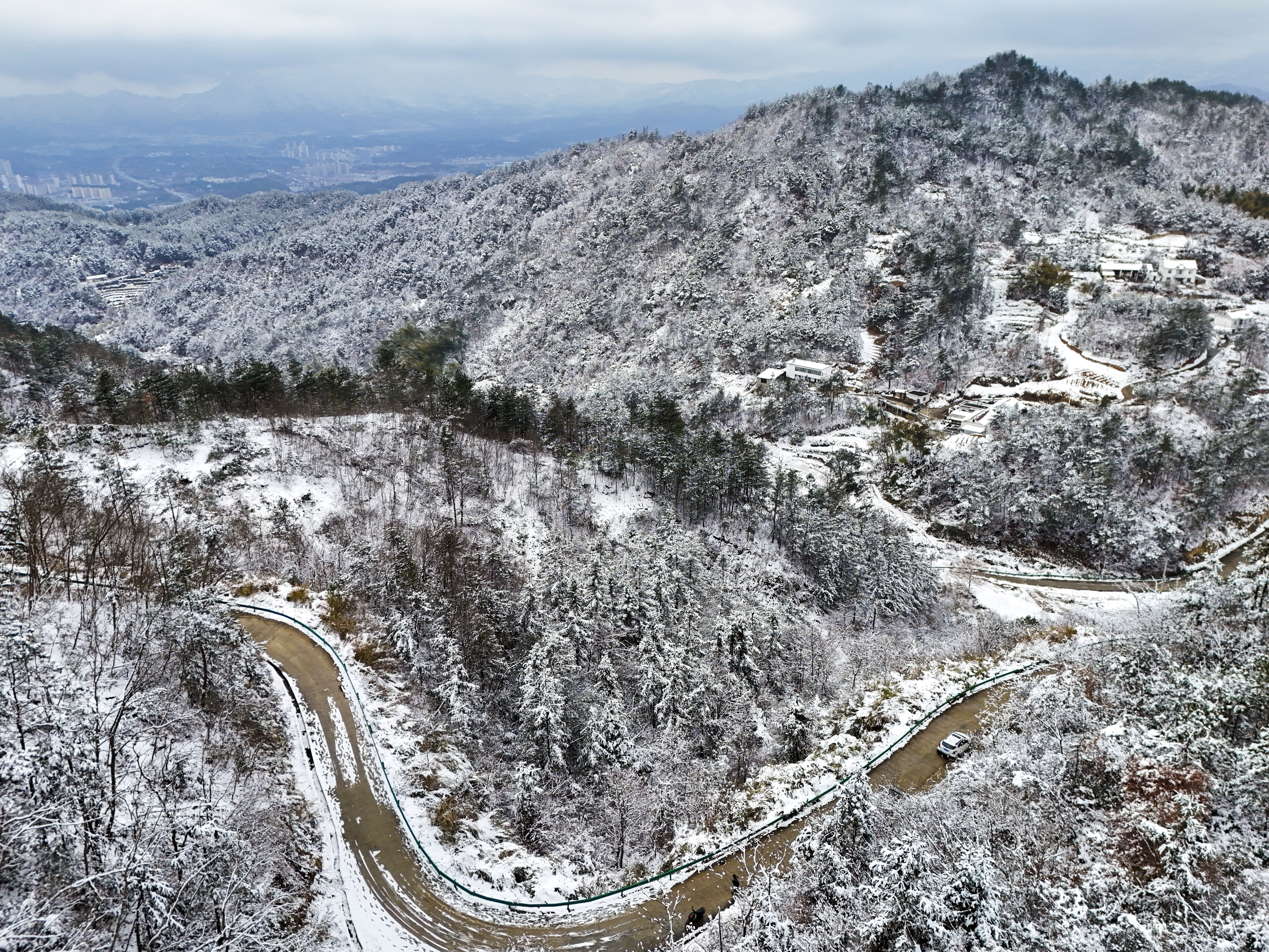 1月1日,岳西县天堂镇余安村,迎来2026年的第一场雪,村庄、道路、群山被白雪覆盖,与连绵山脉相映成趣,宛如一幅浑然天成的冬日水墨画卷。(熊凤霞)