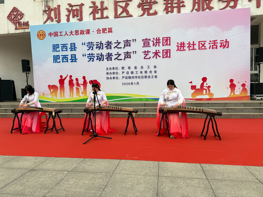 2026年元旦当天,肥西县“劳动者之声”宣讲团与艺术团进社区活动在刘河社区精彩上演。此次活动是中国工人大思政课·合肥篇的重要组成部分,由肥西县总工会主办,严店镇工会联合会承办,刘河社区联合工会协办,为社区职工与居民带来了一场兼具艺术魅力与思想内涵的文化体验。