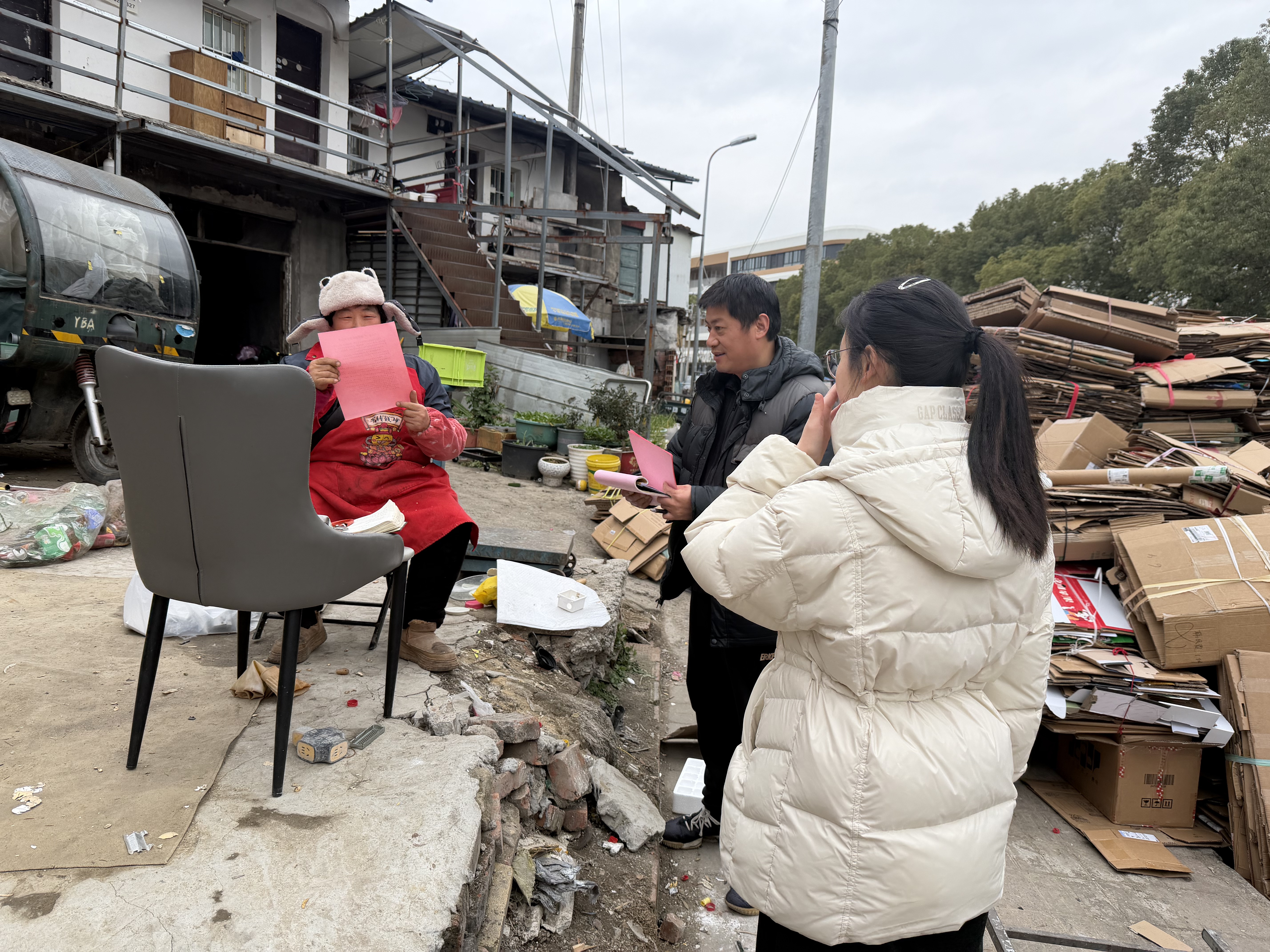 宣传环节,社区通过政策解读、风险警示等方式,向经营主体明确“三合一”场所的安全规范要求,引导商户自觉遵守禁停禁放、规范存储等规定,主动整改违规行为。排查环节,社区聚焦违规住宿、消防通道堵塞、易燃物品乱堆乱放等关键问题,推动隐患整改与责任落实,对拒不整改的经营主体依法依规进行处理。