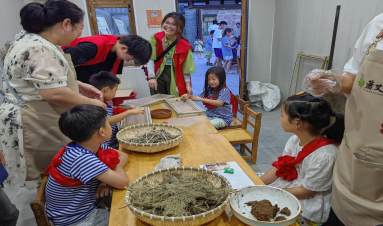 (图为游客在“萧艾工坊”展区参加艾草文化讲座体验活动)