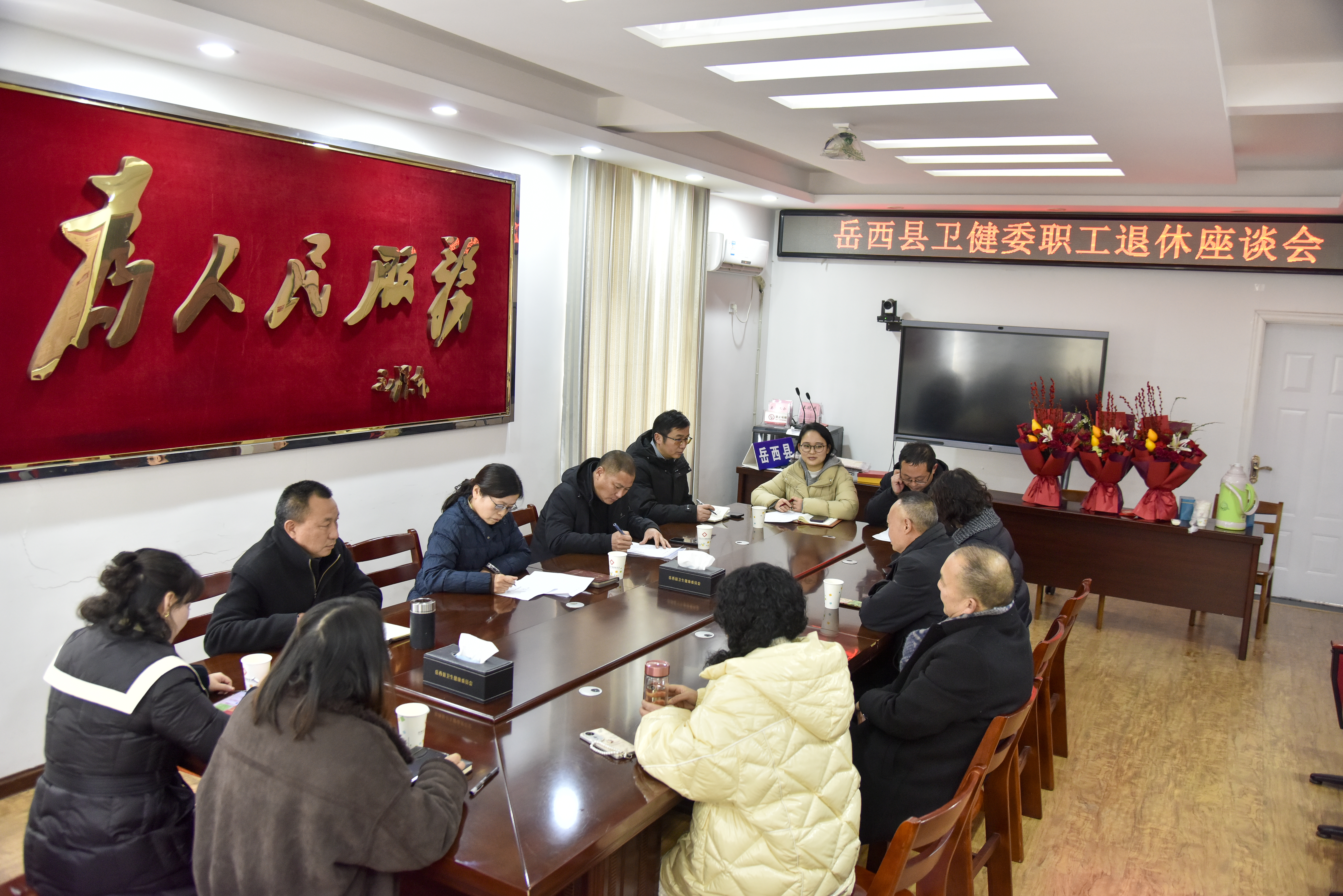 近日,岳西县卫健委举行温馨庄重的荣誉退休座谈会,深情欢送祝得意、祝方霞、曾嵘三位同志光荣退休。委领导班子成员、相关股室负责人及部分干部职工代表齐聚一堂,共忆峥嵘岁月,共话卫健情怀,为三位同志送上诚挚祝福与衷心感谢。