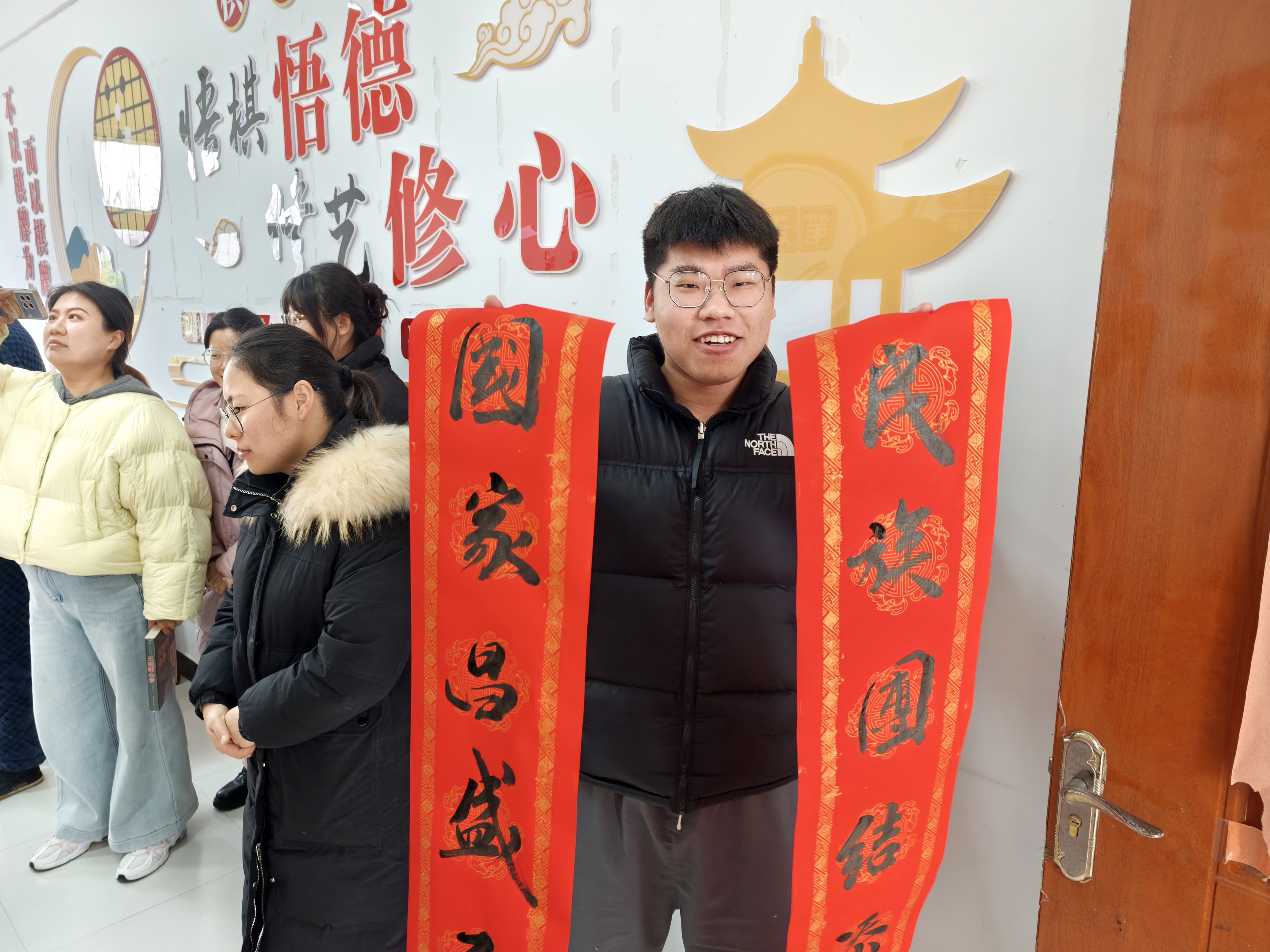 随后,大家齐聚书写桌旁,一边欣赏书法技艺,一边挑选心仪的春联内容。殷涧镇文化站特邀本地书法爱好者现场挥毫,一幅幅满载美好祝愿的春联跃然纸上。既有“多元文化共织中华锦绣,各族儿女同谱时代华章”这样紧扣民族团结的佳句,也有“春回大地风光好,福满人间喜事多”等传统吉祥对联。红纸黑字间,传递的不仅是节日的欢庆,更是各民族交往交流交融、和谐共生的深情厚谊。