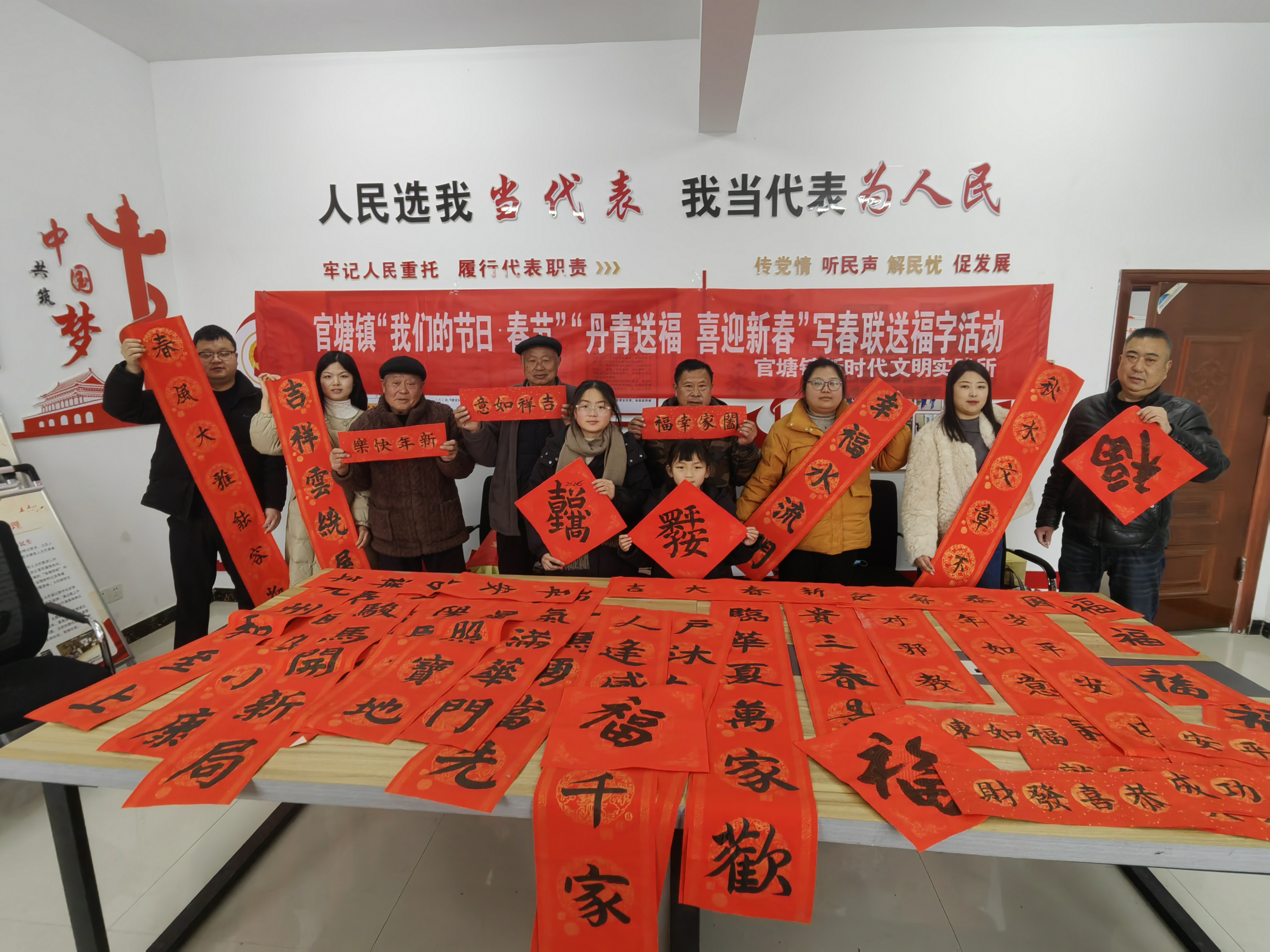 2月9日下午,凤阳县官塘镇新时代文明实践所在文化站开展“我们的节日·春节”“丹青送福 喜迎新春”写春联送福字活动。浓浓的墨香与红火的春联交相辉映,为即将到来的春节增添了浓浓的文化气息。