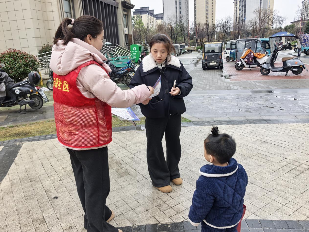 学习结束后,社区工作人员迅速组成宣传小队,下沉辖区各小区开展“面对面”宣传活动。宣传过程中,工作人员通过发放宣传手册的形式,向居民特别是育龄夫妇、新婚家庭和备孕家庭,普及优生优育政策、育儿假落实、生育补贴申领、免费孕前检查等实用知识。工作人员用通俗易懂的家常话,耐心解答居民关于“育儿假如何申请”“生育补贴怎么领取”“普惠托育服务如何预约”等高频疑问,结合实例拆解政策细节,澄清常见认知误区,让枯燥的政策知识变得接地气、易理解,切实解除群众在“生、养、育”方面的后顾之忧。