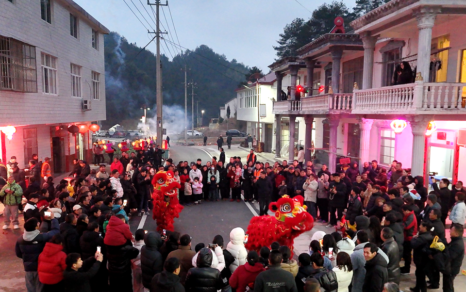 活动现场热闹非凡,铿锵的锣鼓声、欢快的唢呐声此起彼伏,醒狮腾挪跳跃、摇头摆尾,时而登高、时而献瑞,动作灵动威武,将美好祝福送到家家户户。各式花灯流光溢彩、造型精美,与热闹的民俗表演相映成趣,点亮乡村夜色。