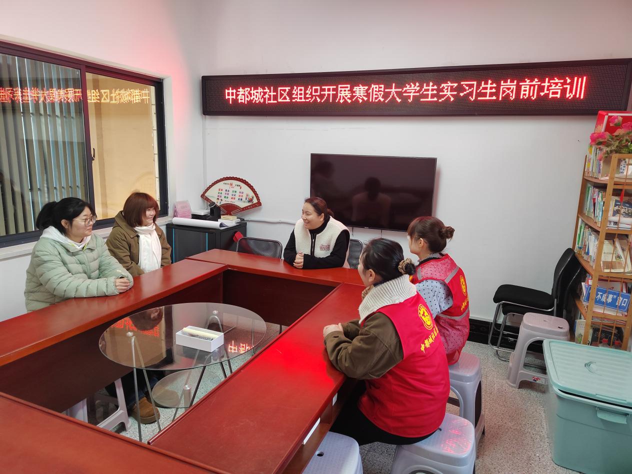量身定制岗前培训,帮助大学生快速适应角色。随着高校陆续放假,社区为招募的大学生志愿者举办了系统性的岗前培训。培训会上,社区负责人详细介绍了社区概况与职能,并围绕制度规范、业务入门、沟通礼仪、安全应急及岗位对接等五个方面进行专题辅导,帮助同学们迅速了解基层工作特点、掌握基本服务技能,为后续实践打下坚实基础。为保障实习质量,社区还为每位大学生志愿者配备了经验丰富的工作人员作为指导老师,实行“一对一”传帮带。