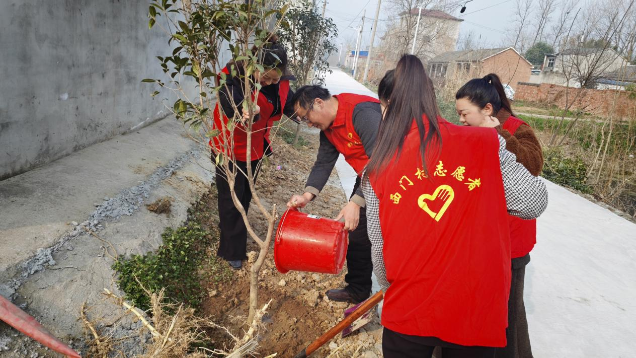 2026年3月12日,在第48个植树节来临之际,太和县倪邱镇西门村组织开展义务植树,党员干部、志愿者共同参与活动,为村庄主干道增绿添彩,以实际行动扮靓和美乡村。