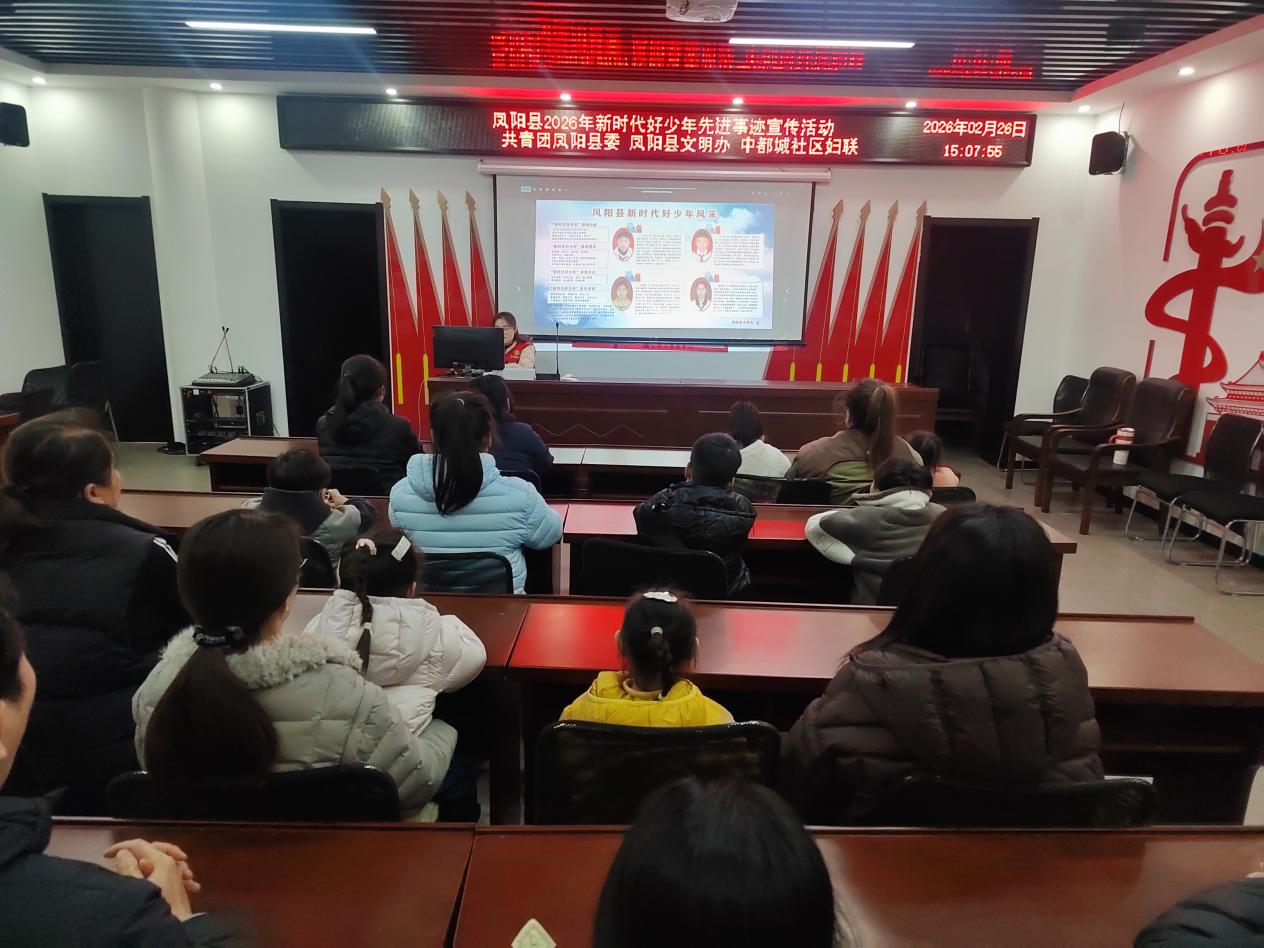 榜样引领,共同筑梦新时代。为加强未成年人思想道德建设,2月26日下午,共青团凤阳县委、县文明办联合中都城社区新时代文明实践站,共同举办了“凤阳县2026年新时代好少年先进事迹宣传活动”。通过身边榜样的力量,引导辖区青少年见贤思齐、崇德向善,争做担当民族复兴大任的时代新人。